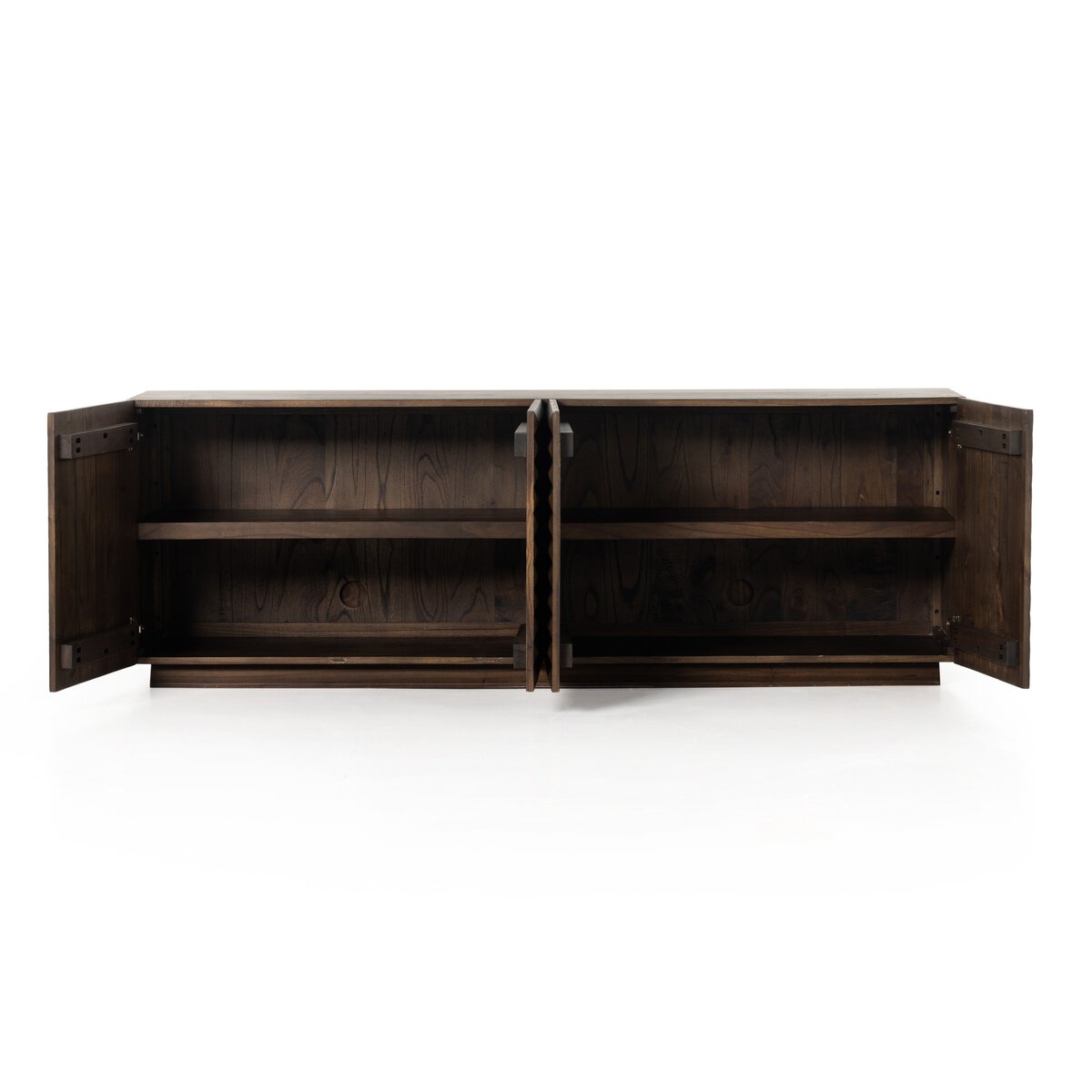 Made from dark-finished neem native to India, Africa and other semi-tropical regions, chamfer detailing brings a linear, textured look to a storage-driven media console. Dual rear cutouts for cord management.