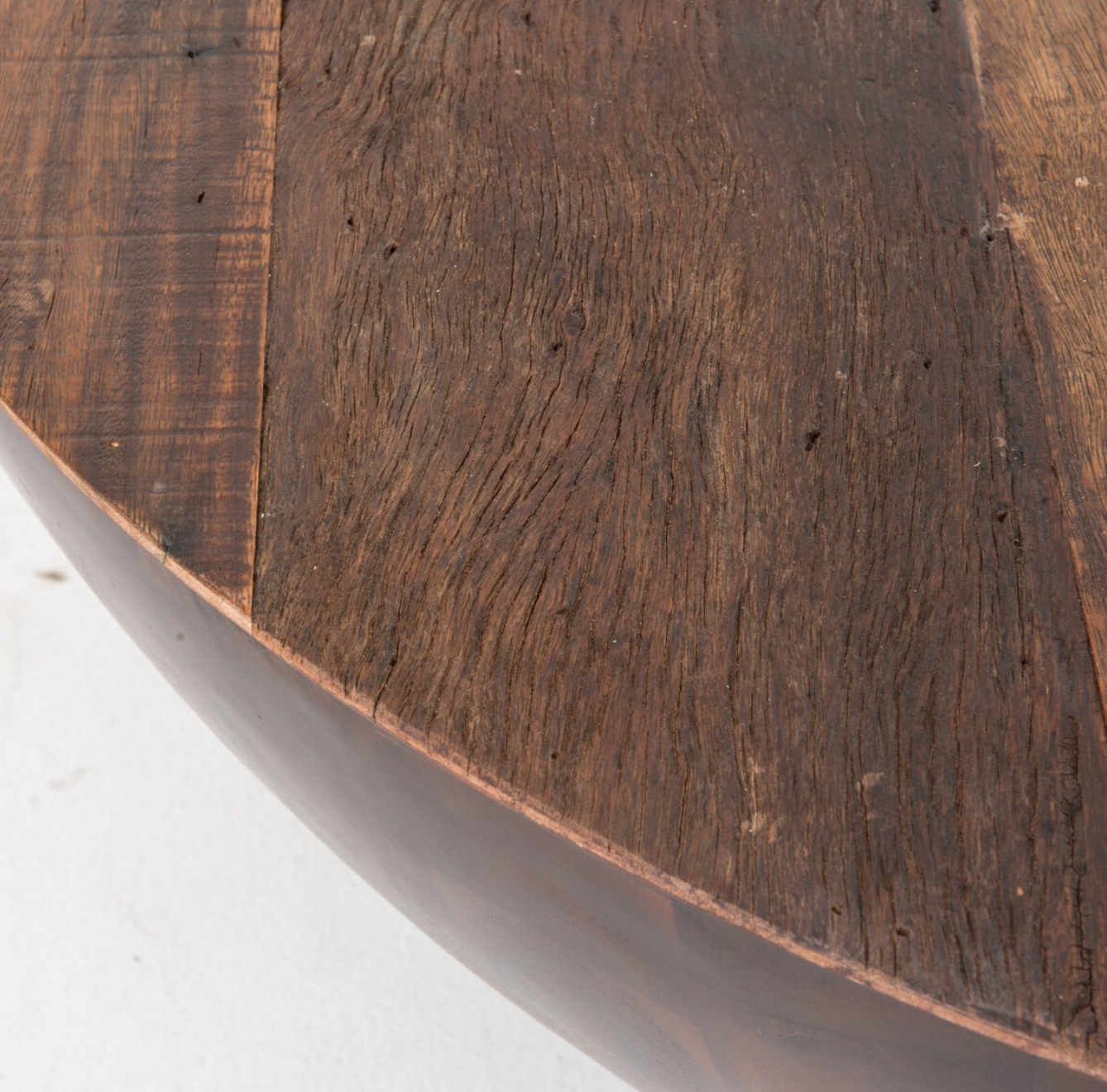 The zen of this intentionally simple half-sphere can anchor an entire room. Natural imperfections in the wood make each table one-of-a-kind. This piece is designed in collaboration with Thomas Bina. The renowned Los Angeles furniture designer began in the early 2000s, producing several unique collections including reclaimed wood-driven case goods and Brazilian-inspired upholstery.