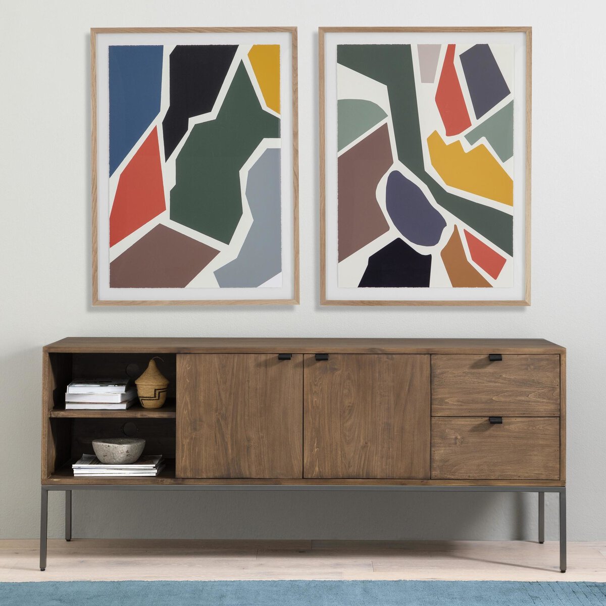Inspired by clean midcentury design, a stylish console of light-washed solid poplar and greyish auburn poplar offers plenty of media storage space by way of roomy cabinetry, open shelving and dual drawers. Metal-secured pulls of top-grain leather add a textural element of surprise. Great solo or paired with matching bookcases for even more storage.