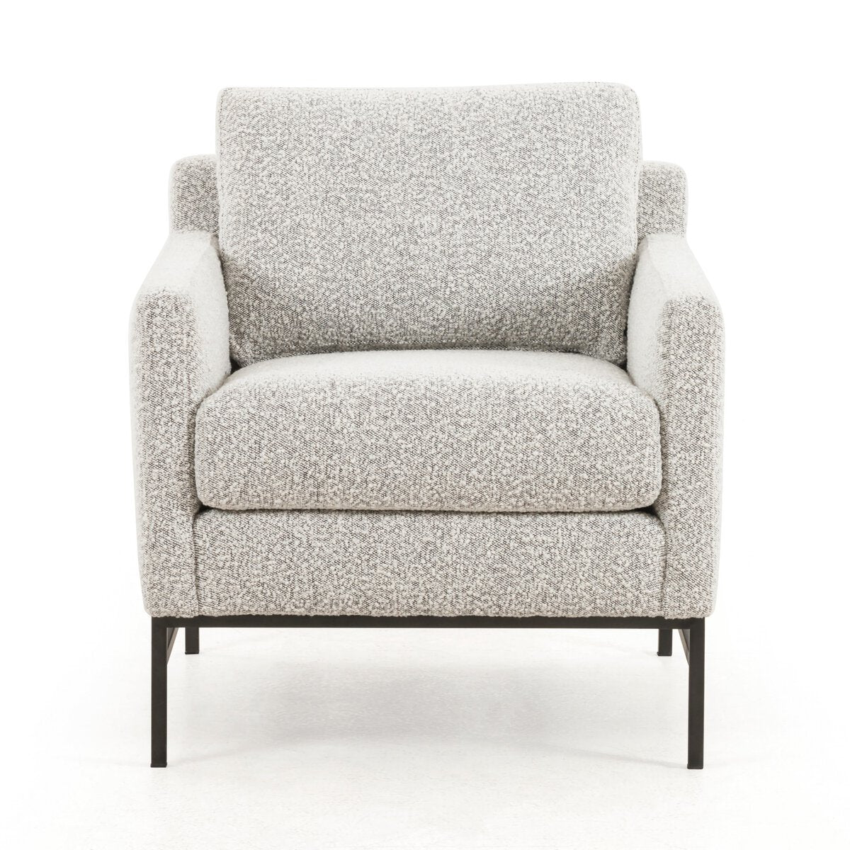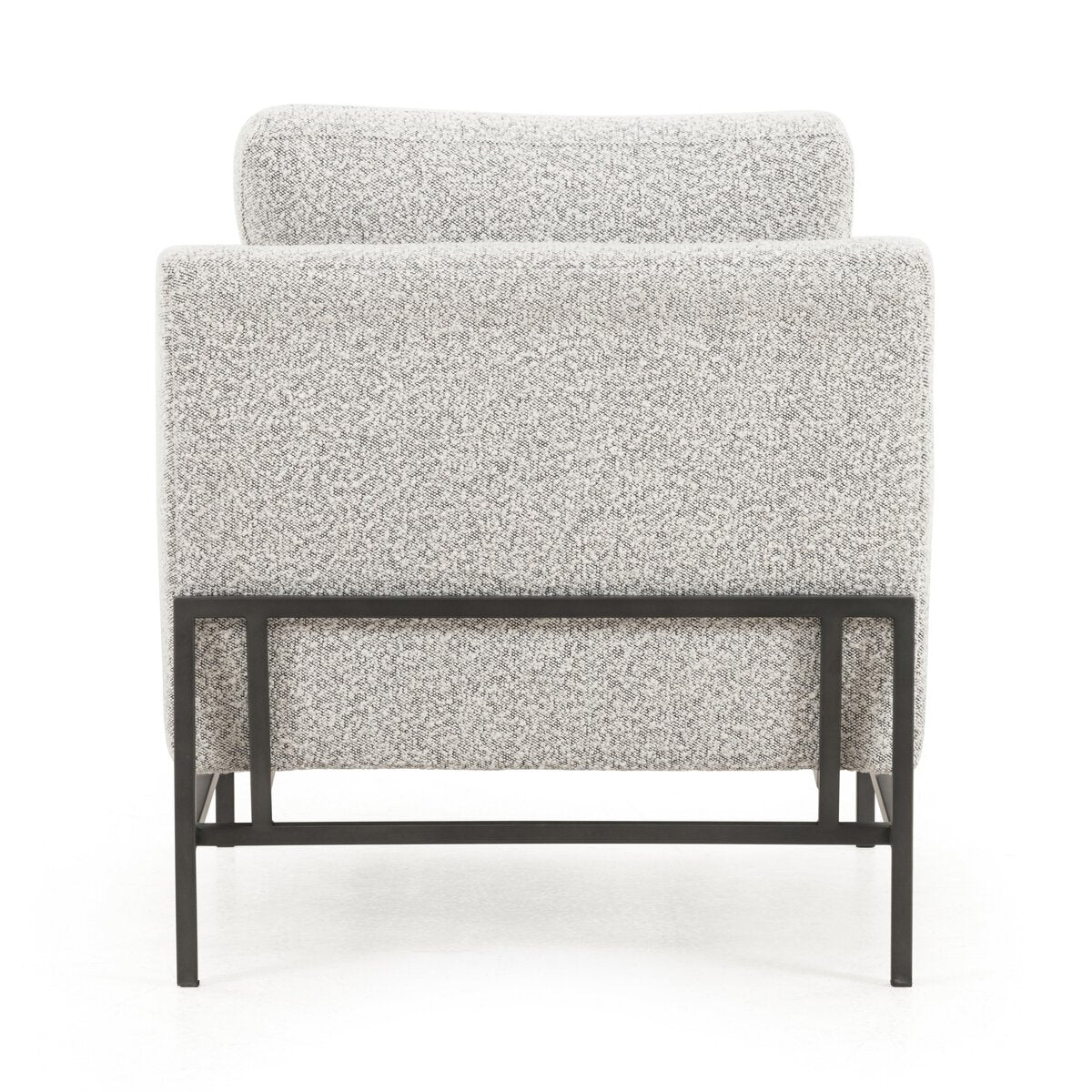 Plush and modern-minded. Atop an airy, slate-brushed iron base, hand-sanded top-grain leather features clean, angular track arms and comfy cushioning, for the best of both worlds.