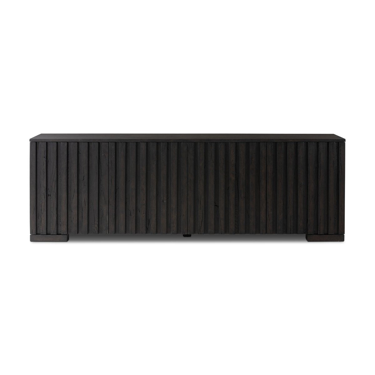 Made from reclaimed French oak and finished in a rich espresso, a spacious sideboard features heavy reeding, for a linear look reflective of midcentury inspiration. Fully finished interior. Designed in partnership with longtime Four Hands collaborator Thomas Bina and Brazilian designer Ronald Sasson.