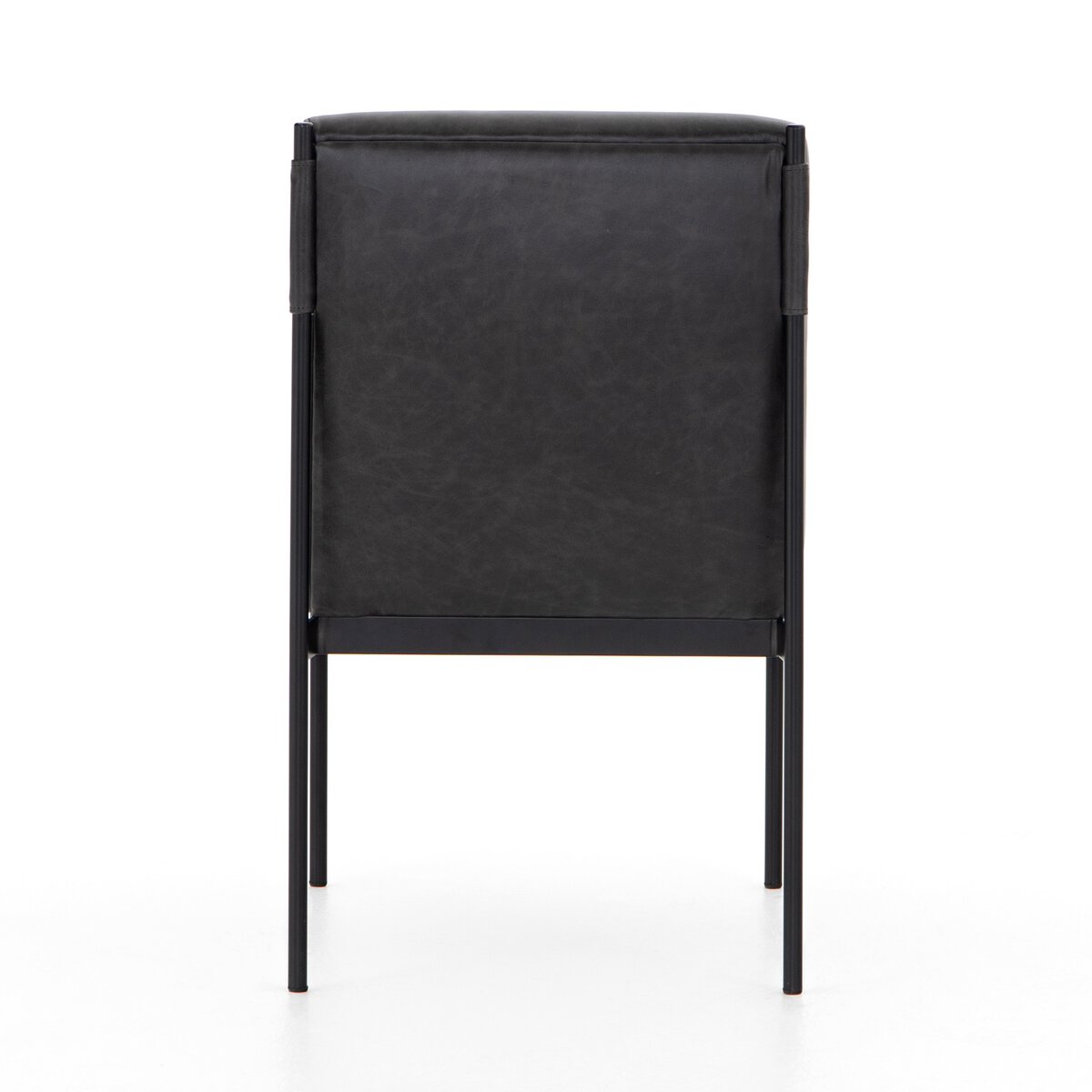 Sleek and sophisticated. Buttery top-grain leather exclusive to Four Hands features wide channeling for generous comfort, with slim, cage-like framing of black-finished iron for an effortlessly cool, monochromatic look.