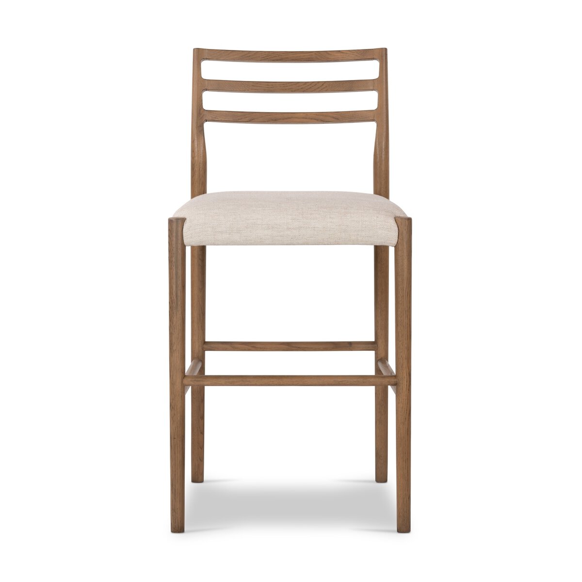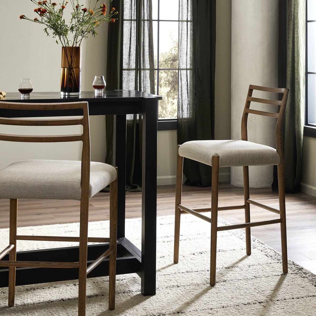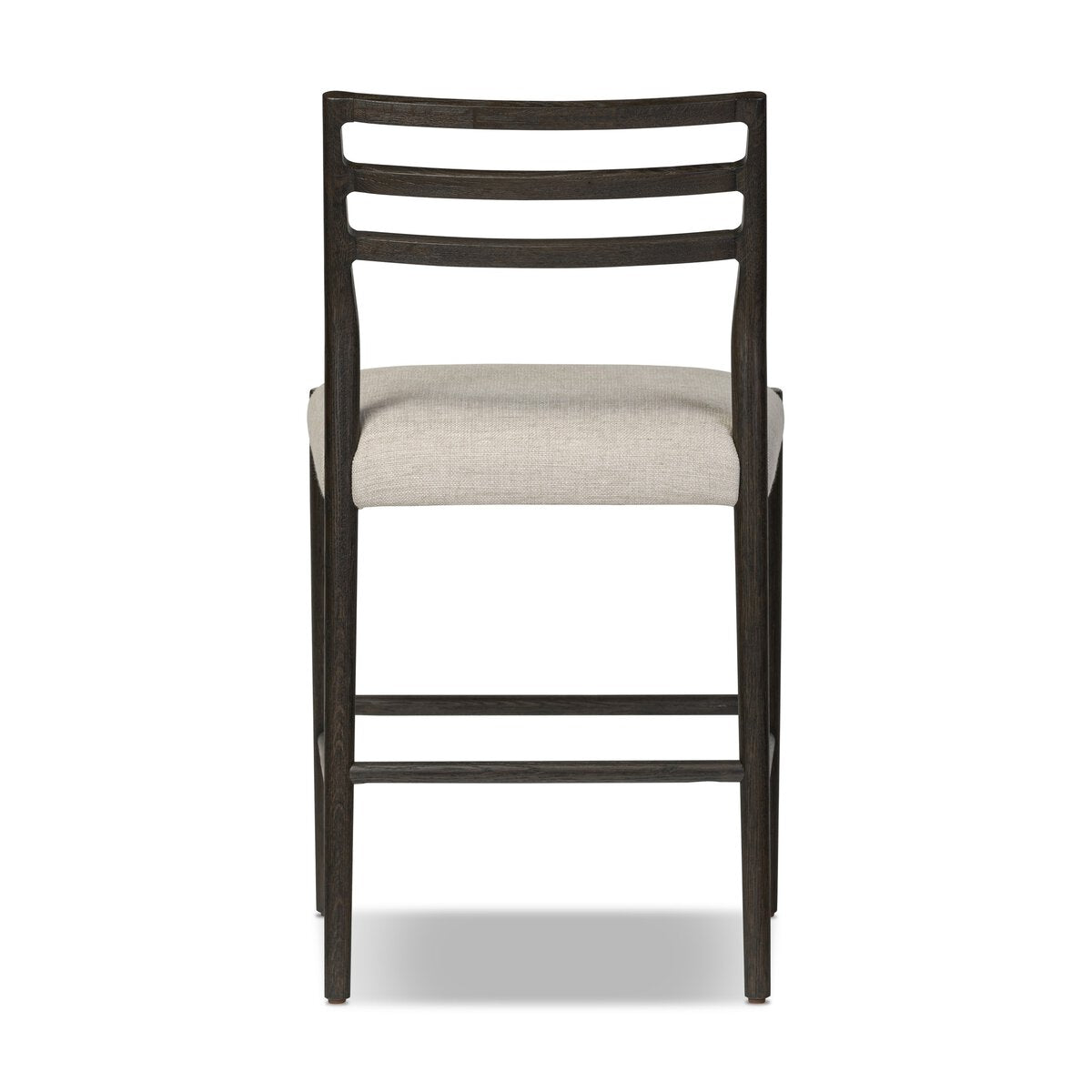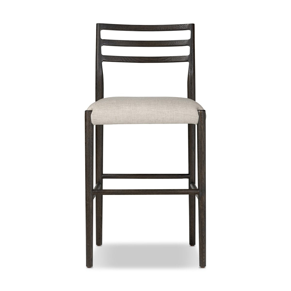 The classic ladderback chair, reimagined. Smoked oak frames a squared cotton- and linen-blend seat, bringing comfort and style to the counter.