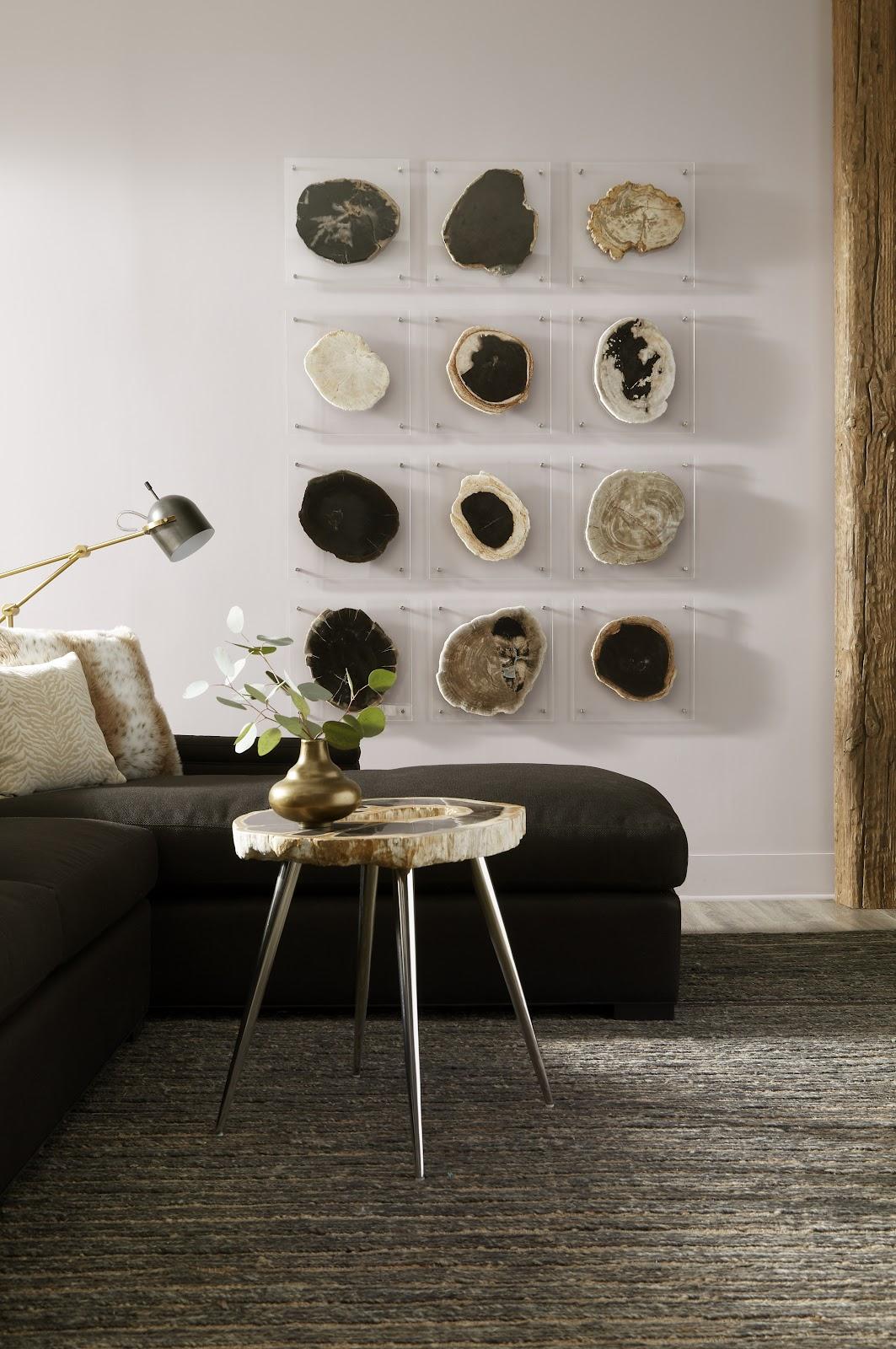 The Floating Petrified Single-Slice Wall Art is made of a clear piece of acrylic behind a fastened slice of petrified wood that was cut and polished by hand in Indonesia. The clarity of the acrylic creates the illusion that the pieces of wood are floating, and the transparency is enhanced by the clean silver brads that attach it to the wall. This natural petrified wood item will vary in color from light to dark tones. It may also vary in shape and size or have natural cracks and splits, giving you your own one-of-a-kind piece.