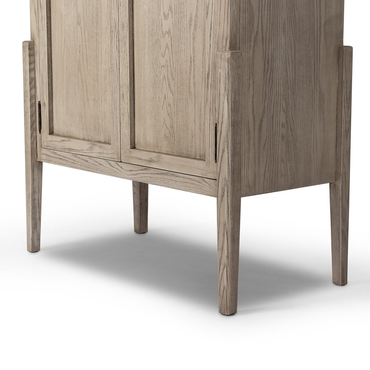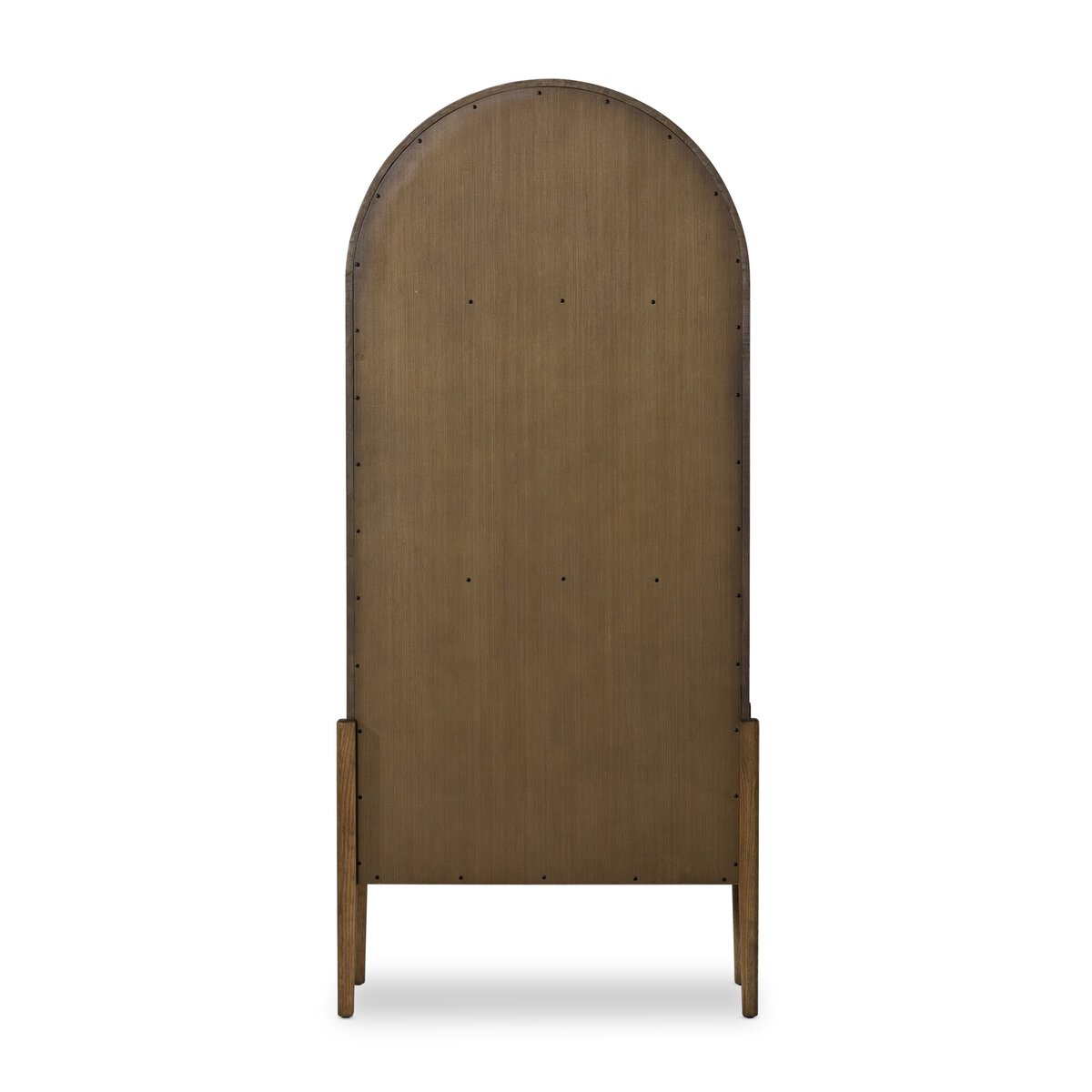 Store it in style. Beautifully shaped cabinetry of rustic white solid oak features spacious interior shelving and recessed wood panel doors, ready for storing your treasures.