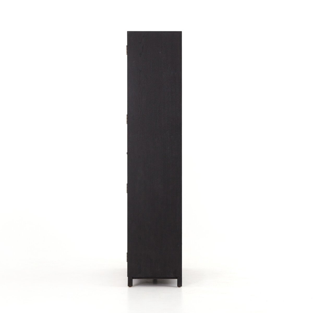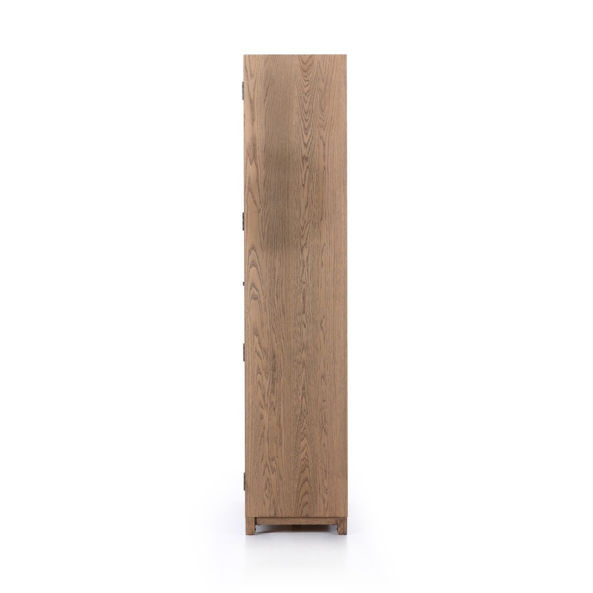 Monochromatic transparency. Natural drifted oak frames interior shelving. Glass doors allow for prized possessions to dazzle on full display while a spacious interior drawer adds an out-of-view storage option.