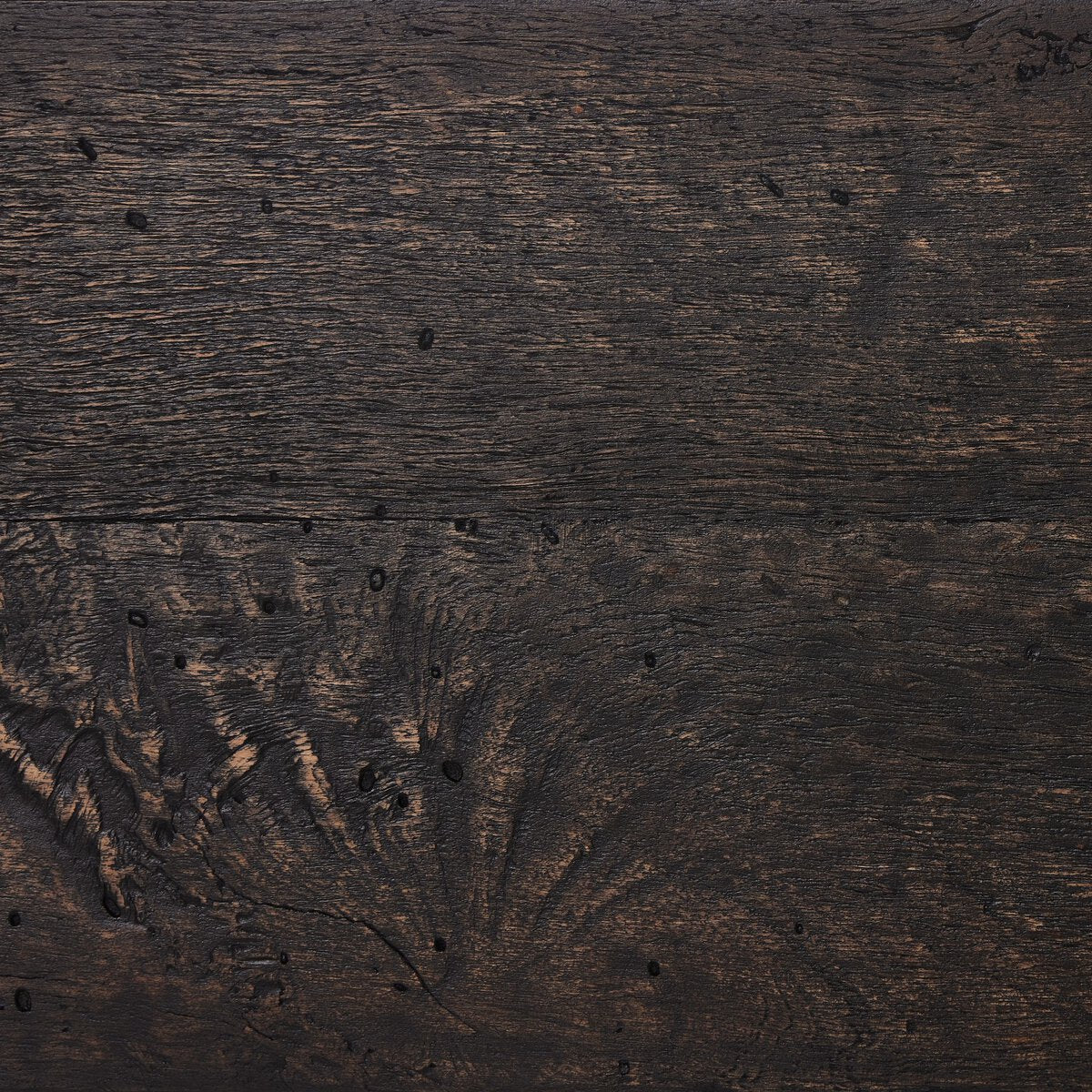Made from thick-cut oak veneer with a rustic finish made to emulate wormwood. Featuring clean Parsons lines, chunky squared legs and dovetail joinery detailing.