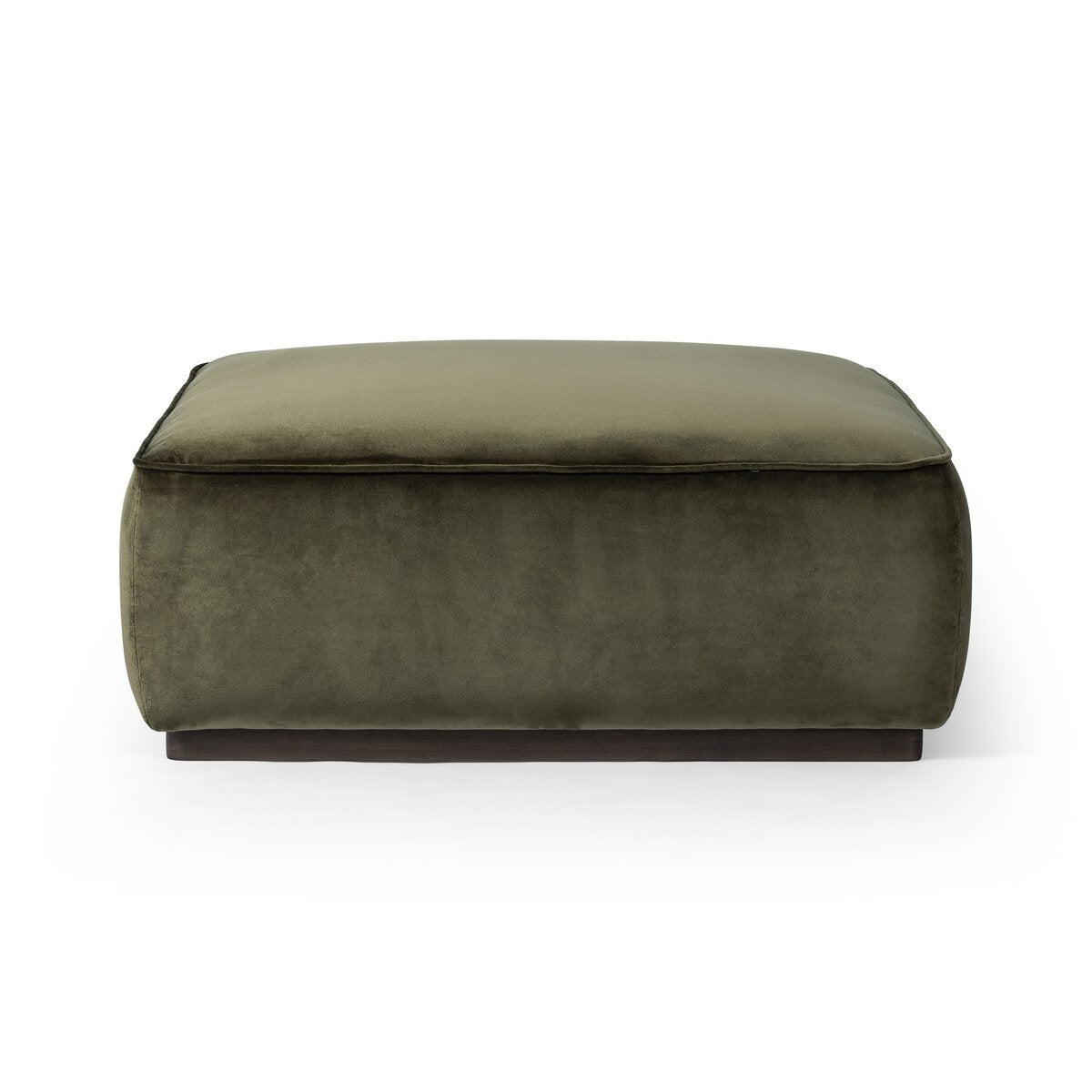 Upholstered in various fabric and paired with a solid parawood base, this 36" square ottoman can be placed just about anywhere bringing with it a retro vibe. Style with a tray as a design-forward coffee table.