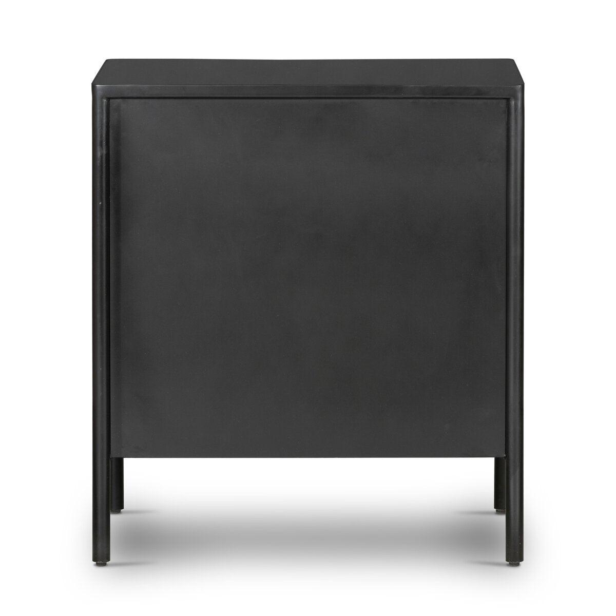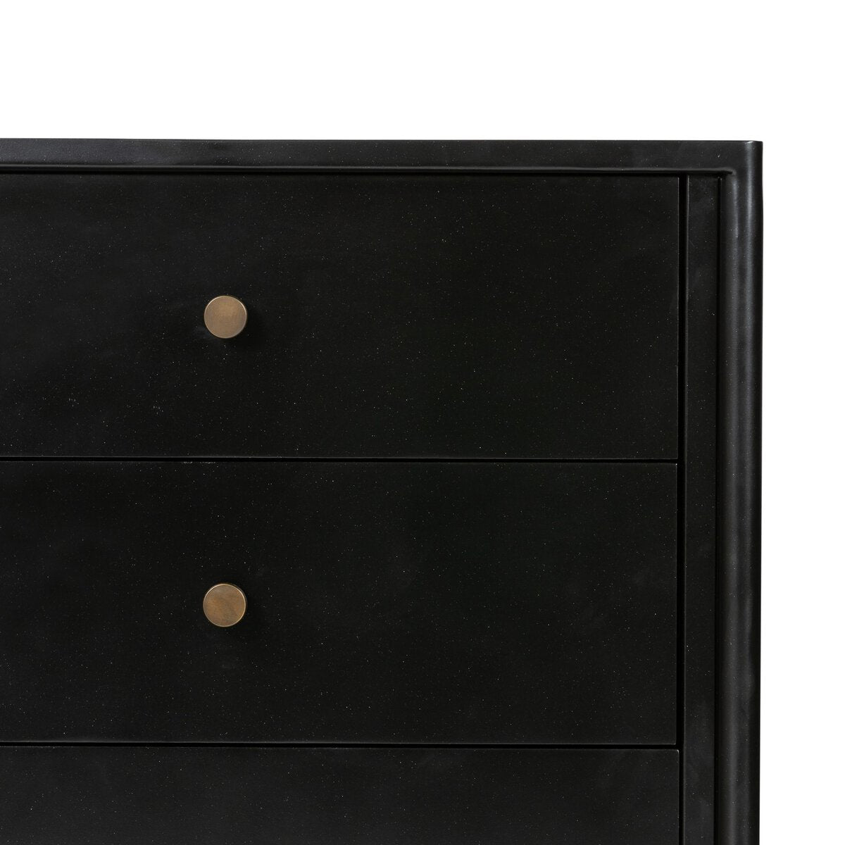 Bring a clean, beautifully industrial look to the bedroom with a three-drawer dresser made from black-finished iron, featuring bronzed iron hardware.
