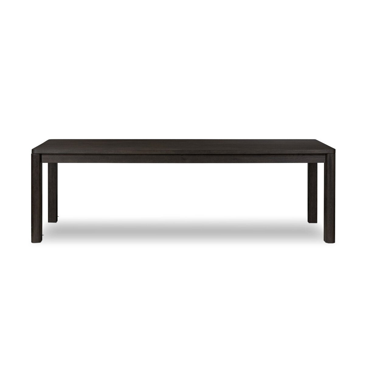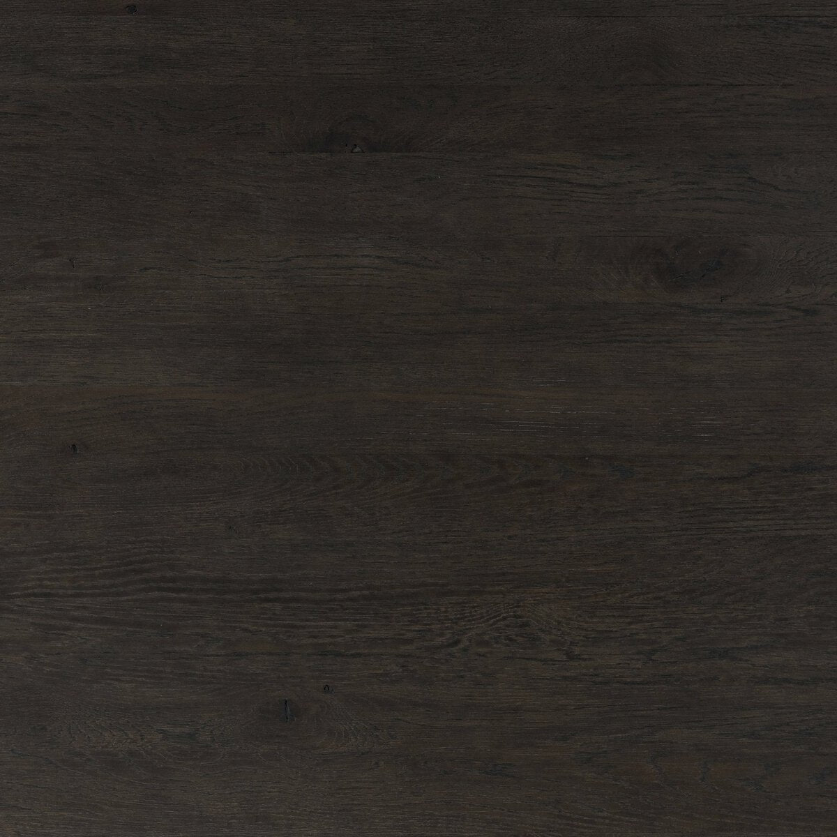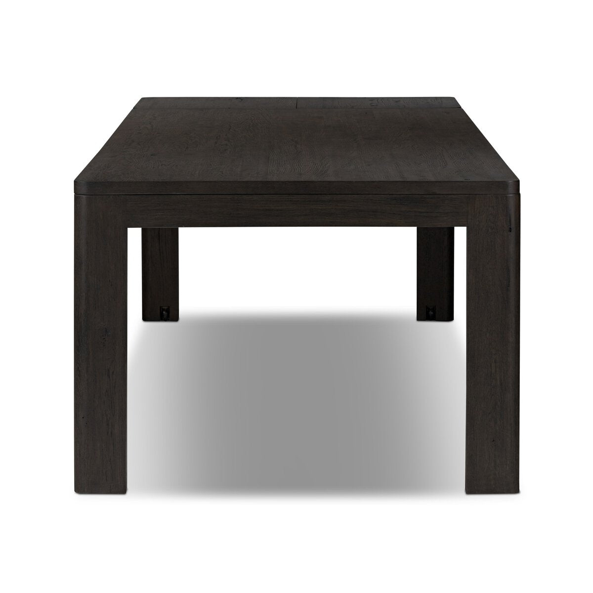 Made from smoked black oak with intentional cracking for an aged look, a self-storing extension creates space for extra guests. Equipped with four lockable wheels for easy extension to 116".