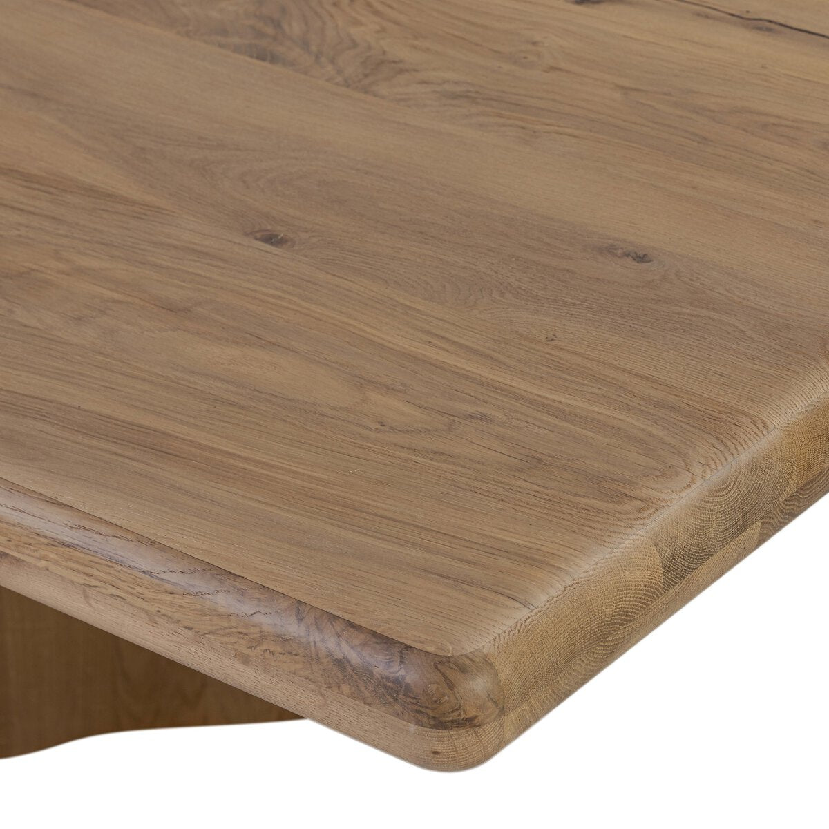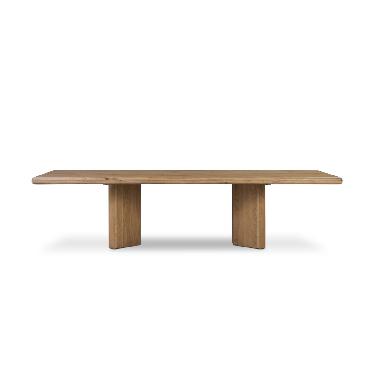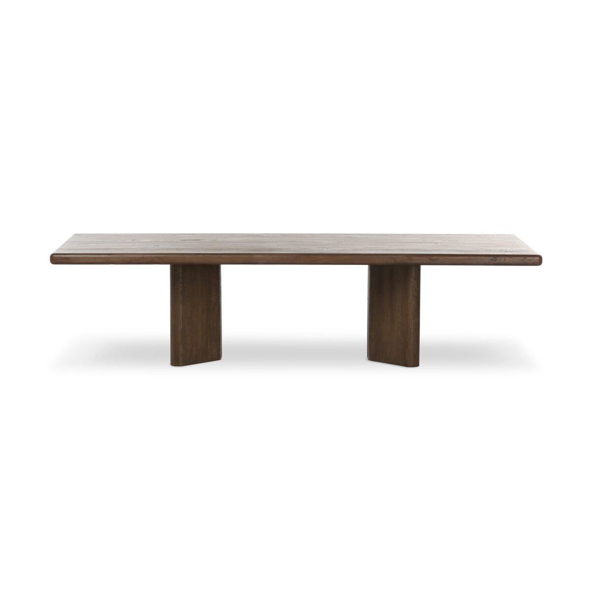 Designed in partnership with Thomas Bina and Brazilian designer Ronald Sasson, a grand-scale dining table is made from solid reclaimed French oak finished in a deep espresso. Rounded edges add a softer, fluid look. Seats 12.