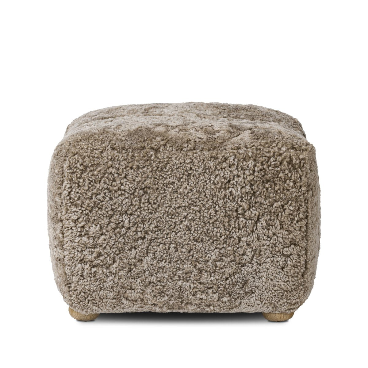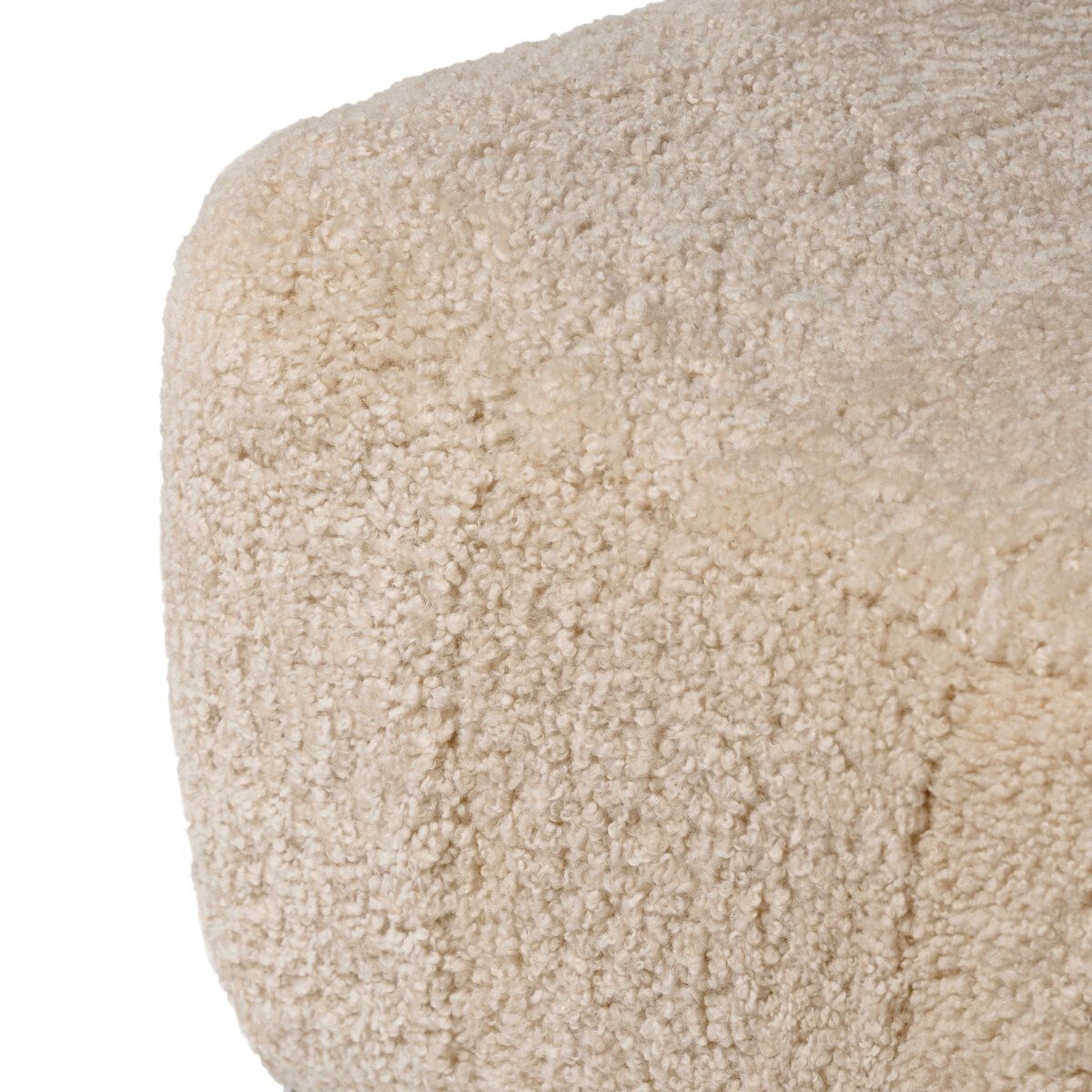 A subtle sweetheart shape paired with shearling plays into this ottoman's found object appeal. S-spring suspension offers a comfy place to sit and the shearling upholstery brings depth and vintage vibes throughout. Perfect styled alone or as part of a set for added drama.