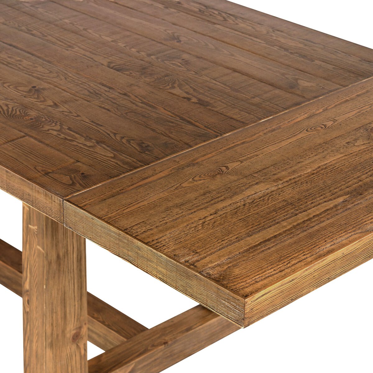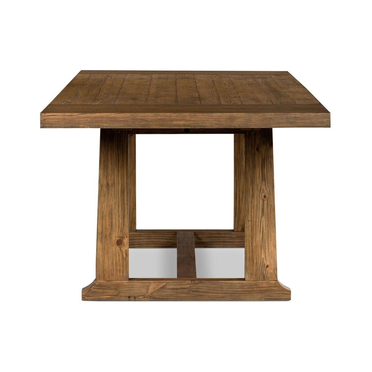 Bring a traditional sense to the table. Finished in a warm honey, a trestle base of solid pine supports a rectangular pine top, waxed and bleached for a rustic look. Two slide-in bread boards create more room at the table for guests, expanding from 86" to 120".