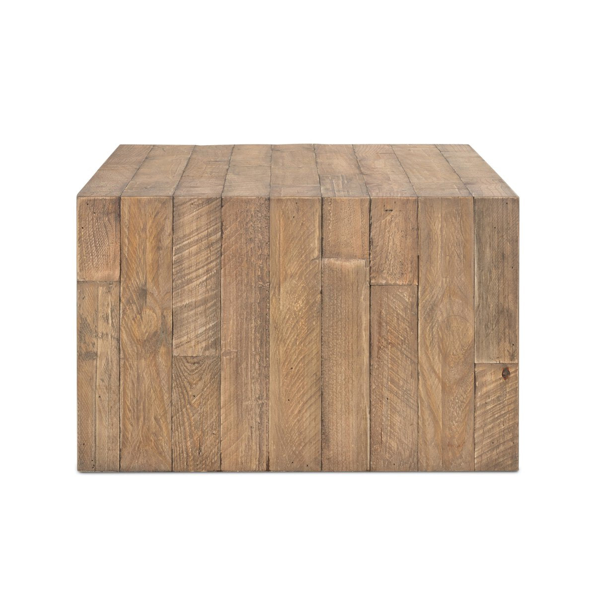 Reclaimed character woods are fashioned into the quintessential rustic coffee table. Lower shelving ups storage space, while materials' natural graining stays intact for authenticity.