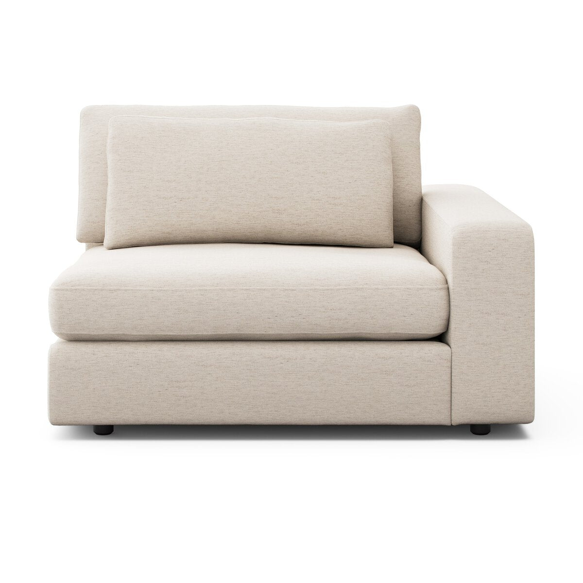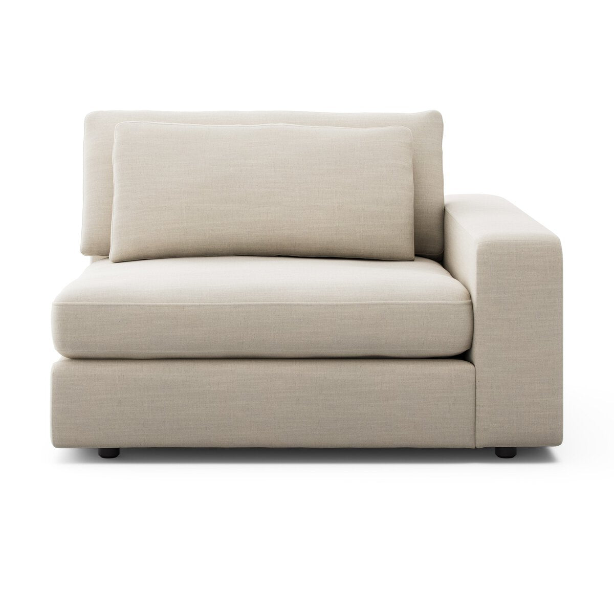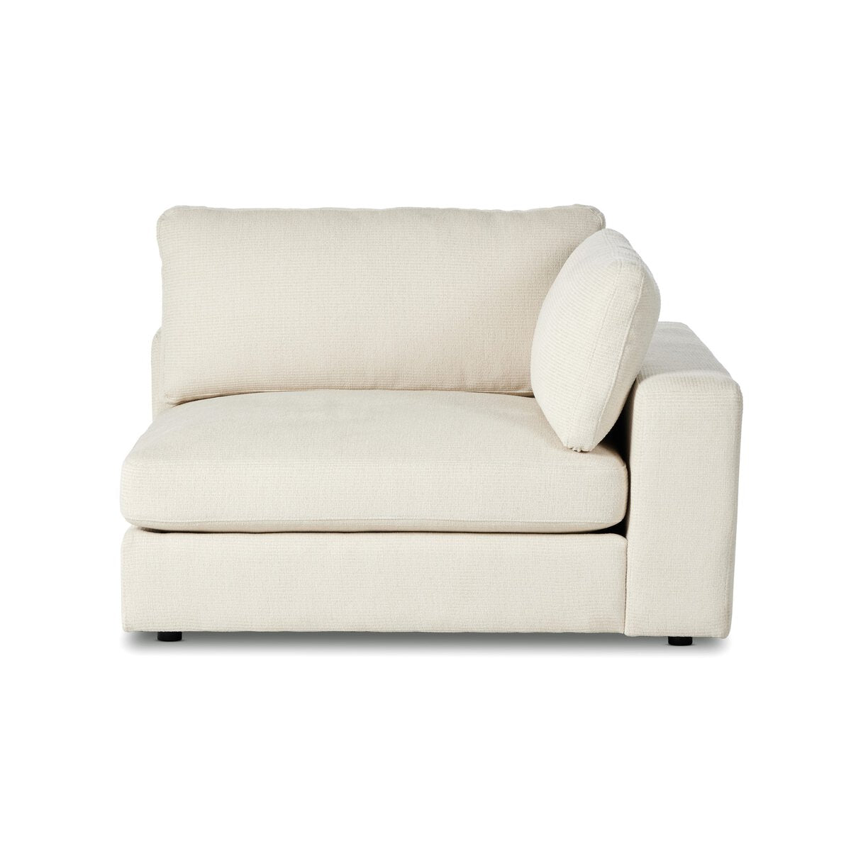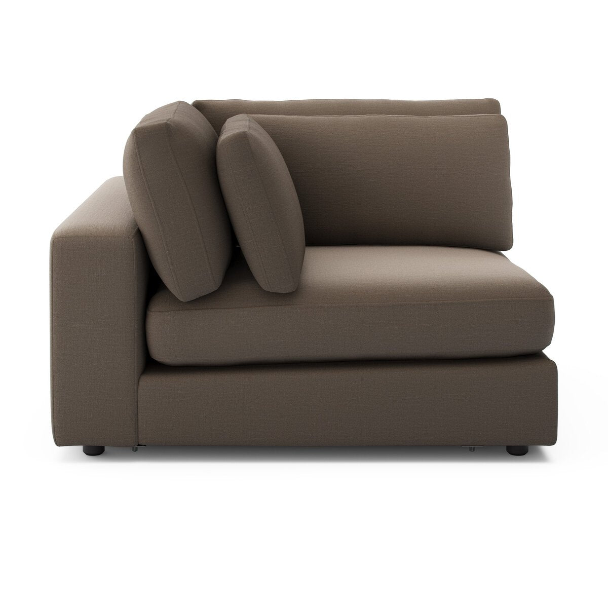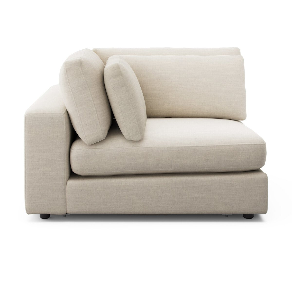 Deep, low seating says relax. An inviting sectional is covered in a durable woven fabric. Modular components allow the perfect combination for any space.
