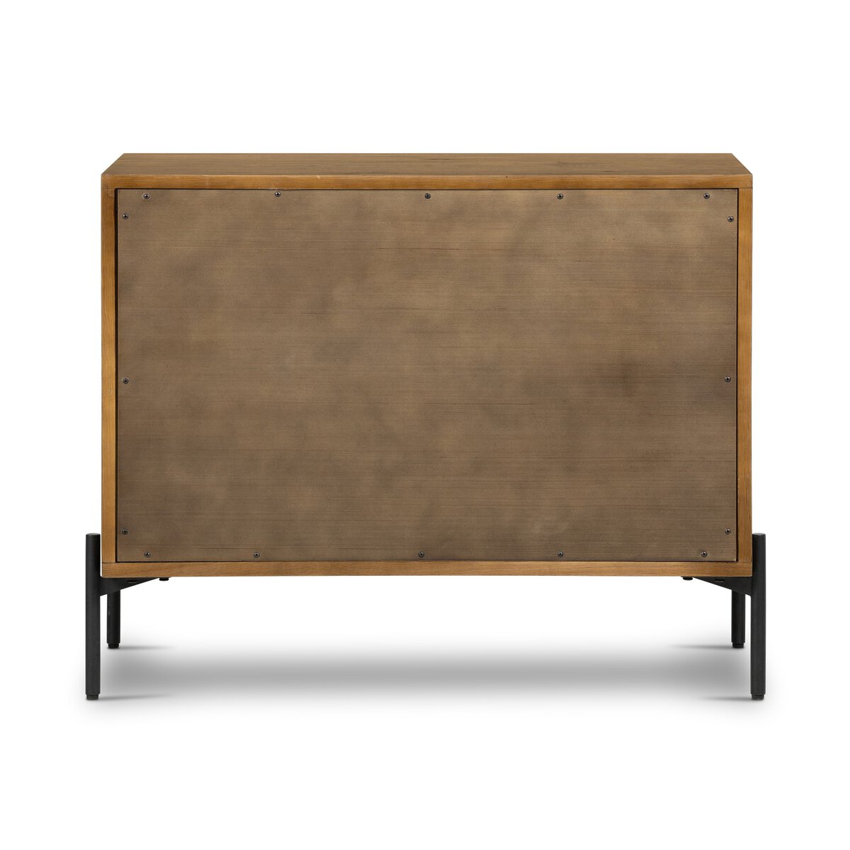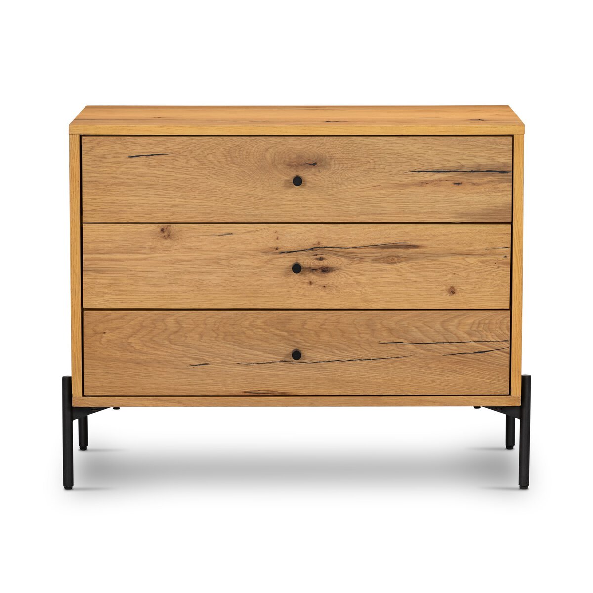 Clean and streamlined. Light-finished oak features three drawers plus gunmetal-finished hardware, for a crisp look that's always in style. Dark resin plays up natural graining for texture and authenticity.