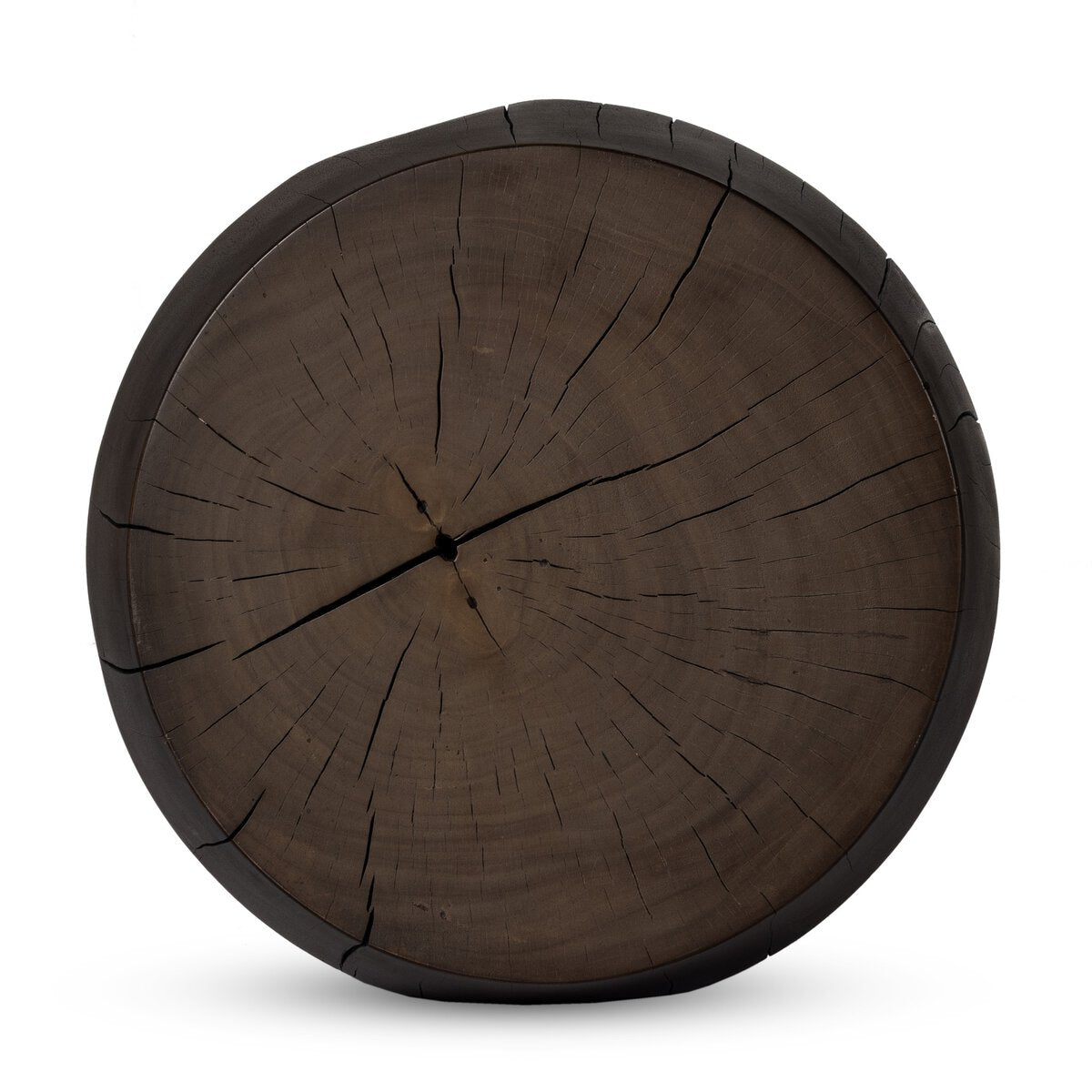 Solid reclaimed woods are hand- and lathe-carved to shape a unique end table. Visible knots, cracks, splits and graining are to be expected and/or may develop over time and speak to the distinctive character of natural materials.