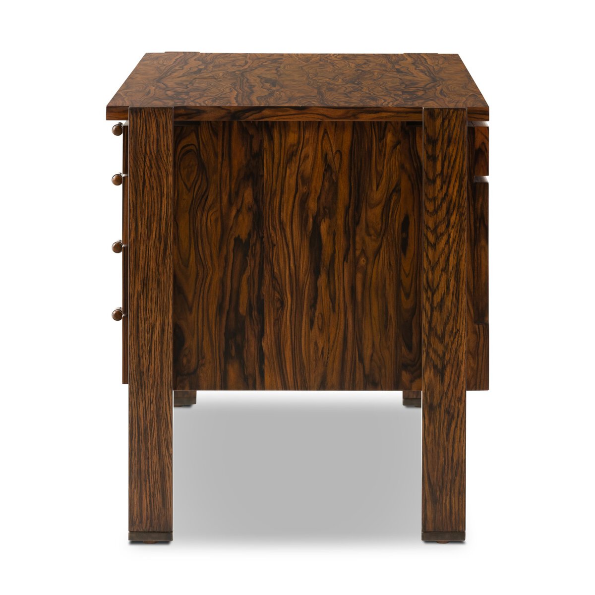 Made from reclaimed French oak and Natural Morado Veneer, a unique open frame design crafts a light look, while dark brass hardware adds warmth. Versatile grey finish, plus four drawers for generous storage space. Designed in partnership with longtime Four Hands collaborator Thomas Bina and Brazilian designer Ronald Sasson.