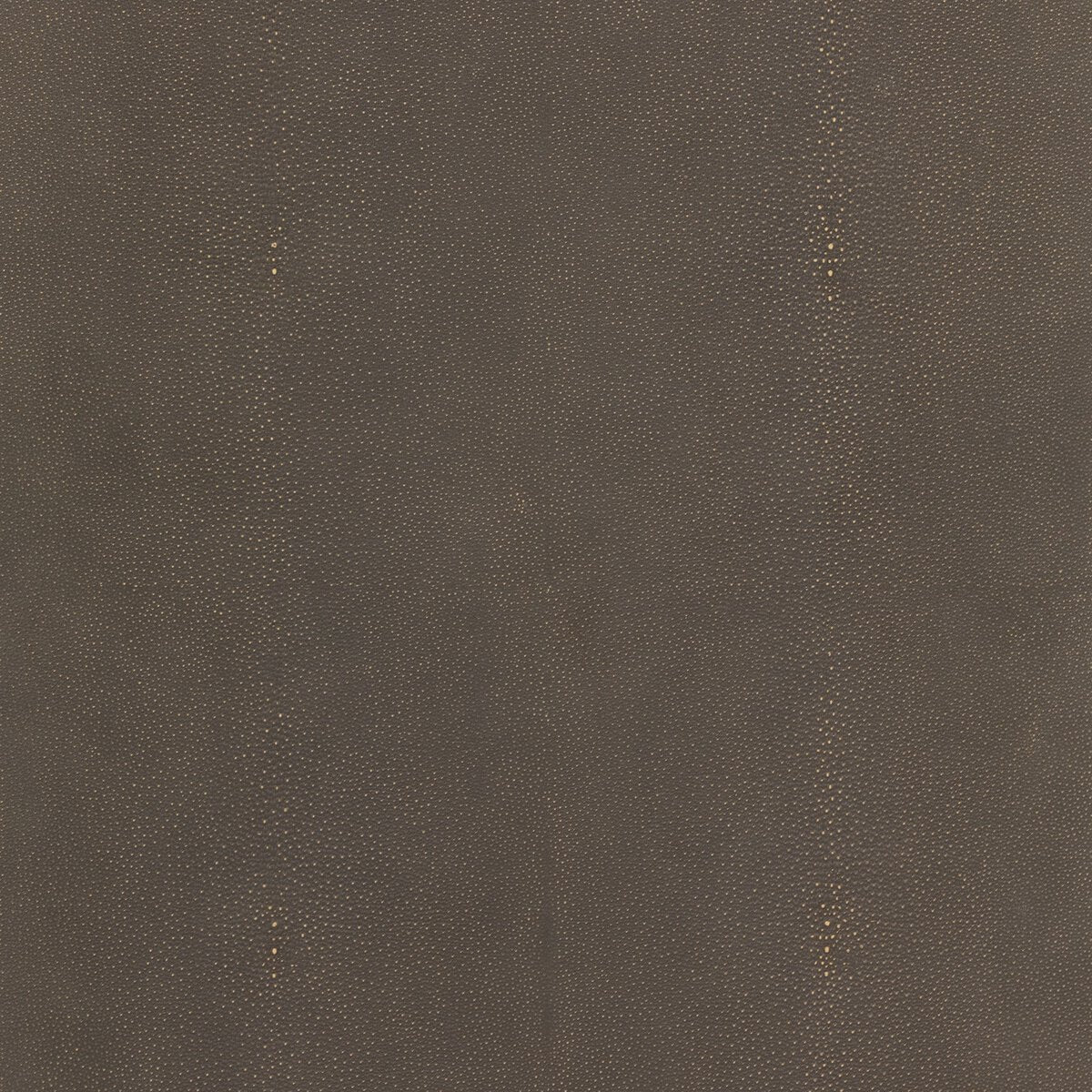 Scaled for utility, textured for style. A grey faux shagreen top floats over a shiny, angular iron base finished in an antique brass.