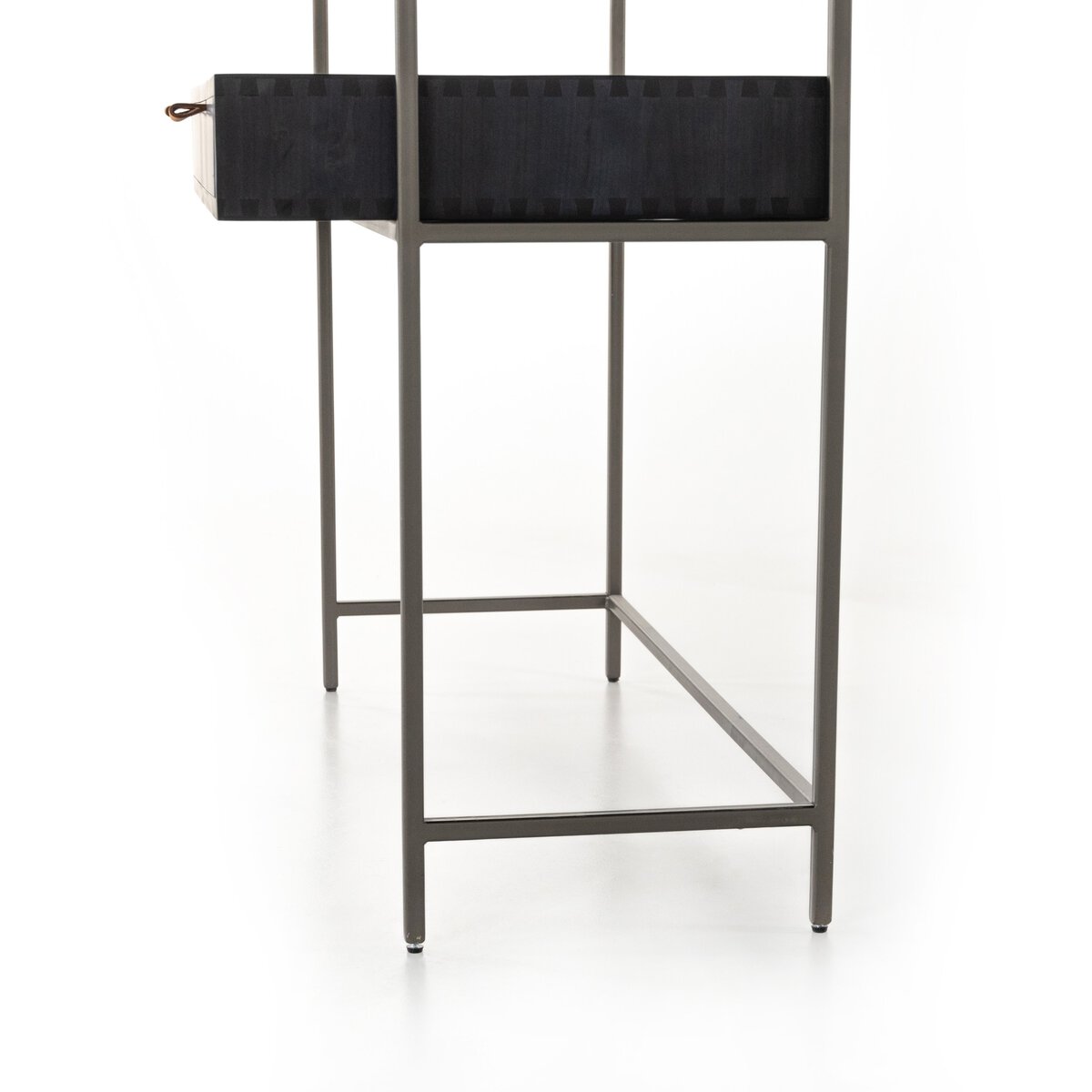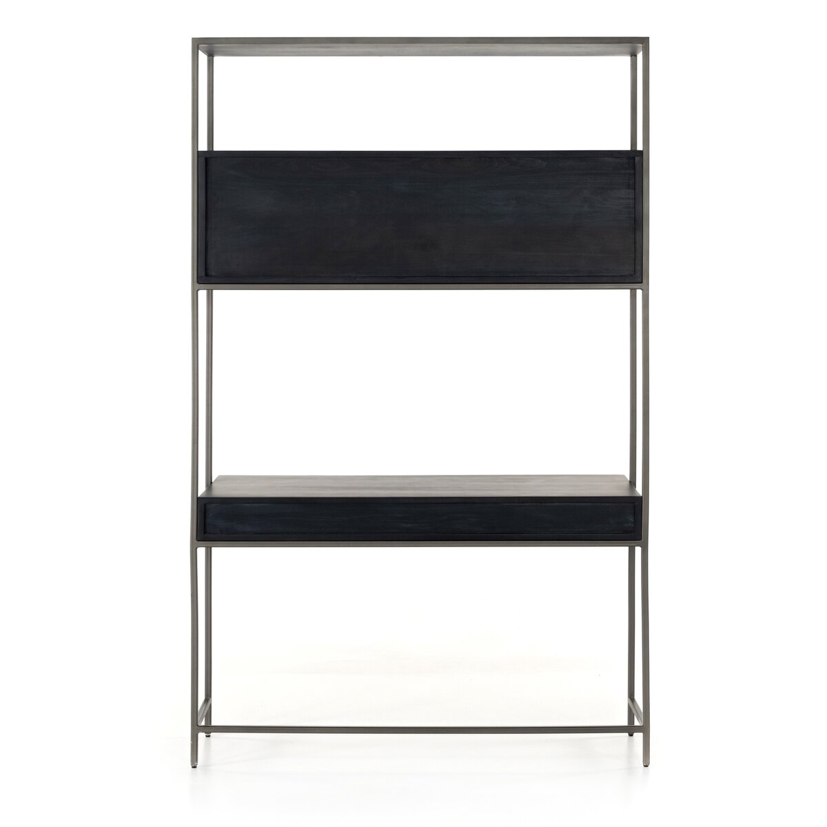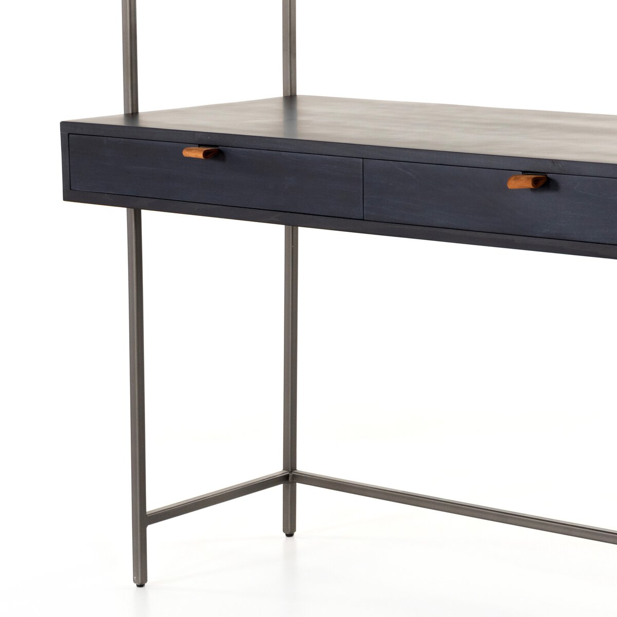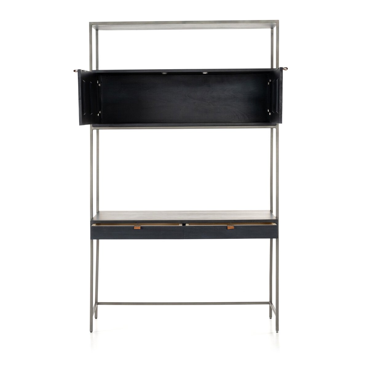 A mid-century-inspired design, light-washed poplar and raw iron fuse for a forward-thinking wall desk with modularity. Dual drawers plus upper cabinetry provide plenty of storage space, while metal-secured pulls of top-grain leather add a fresh element of surprise. Pair with matching bookcase to form a large-scale setup.