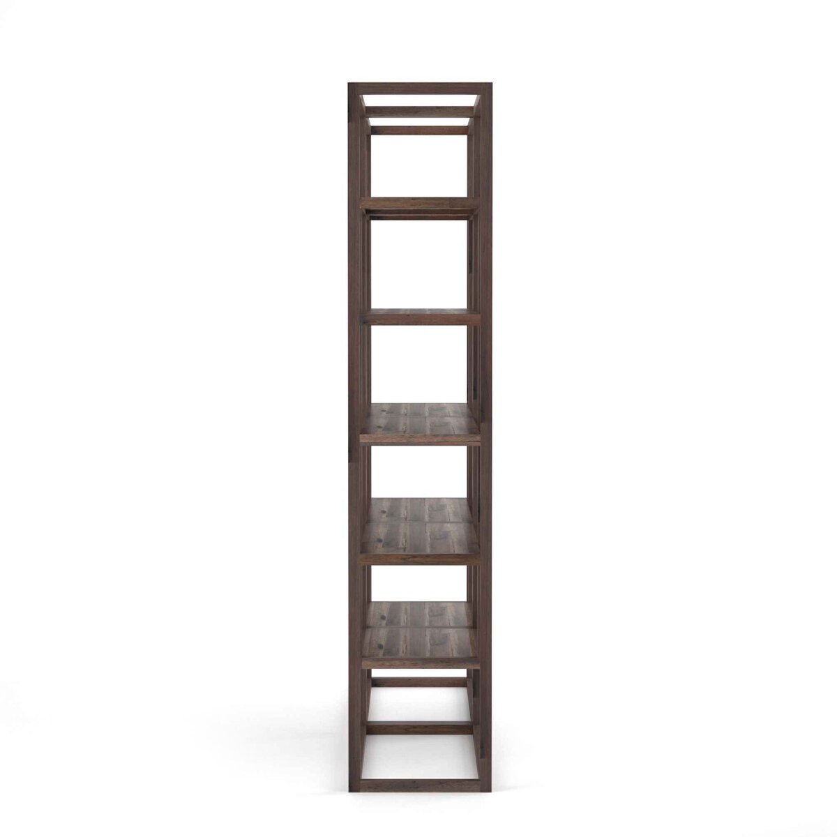 Shapely, étagère-inspired shelving, with natural midcentury vibes. Brown-finished acacia forms an large, open frame for generous shelving ready for favorite books, frames and treasures.