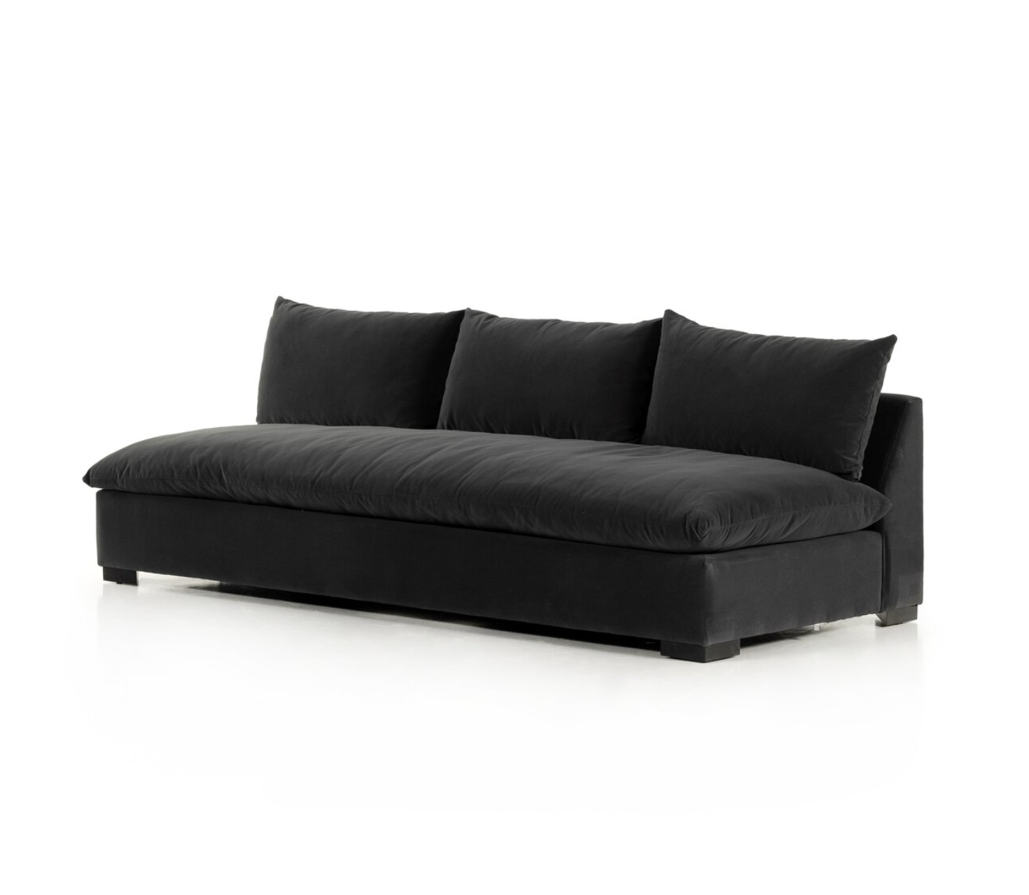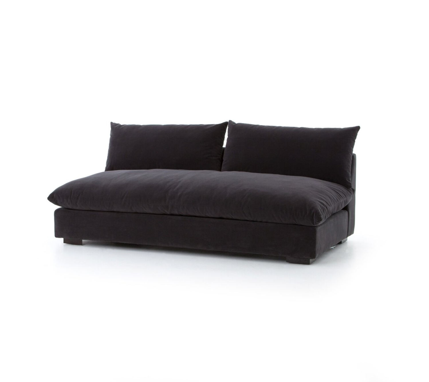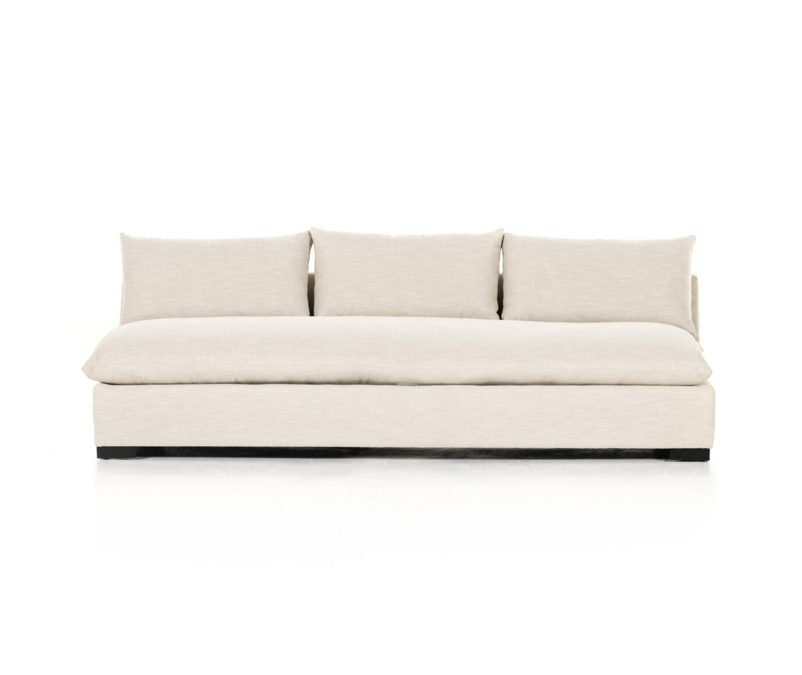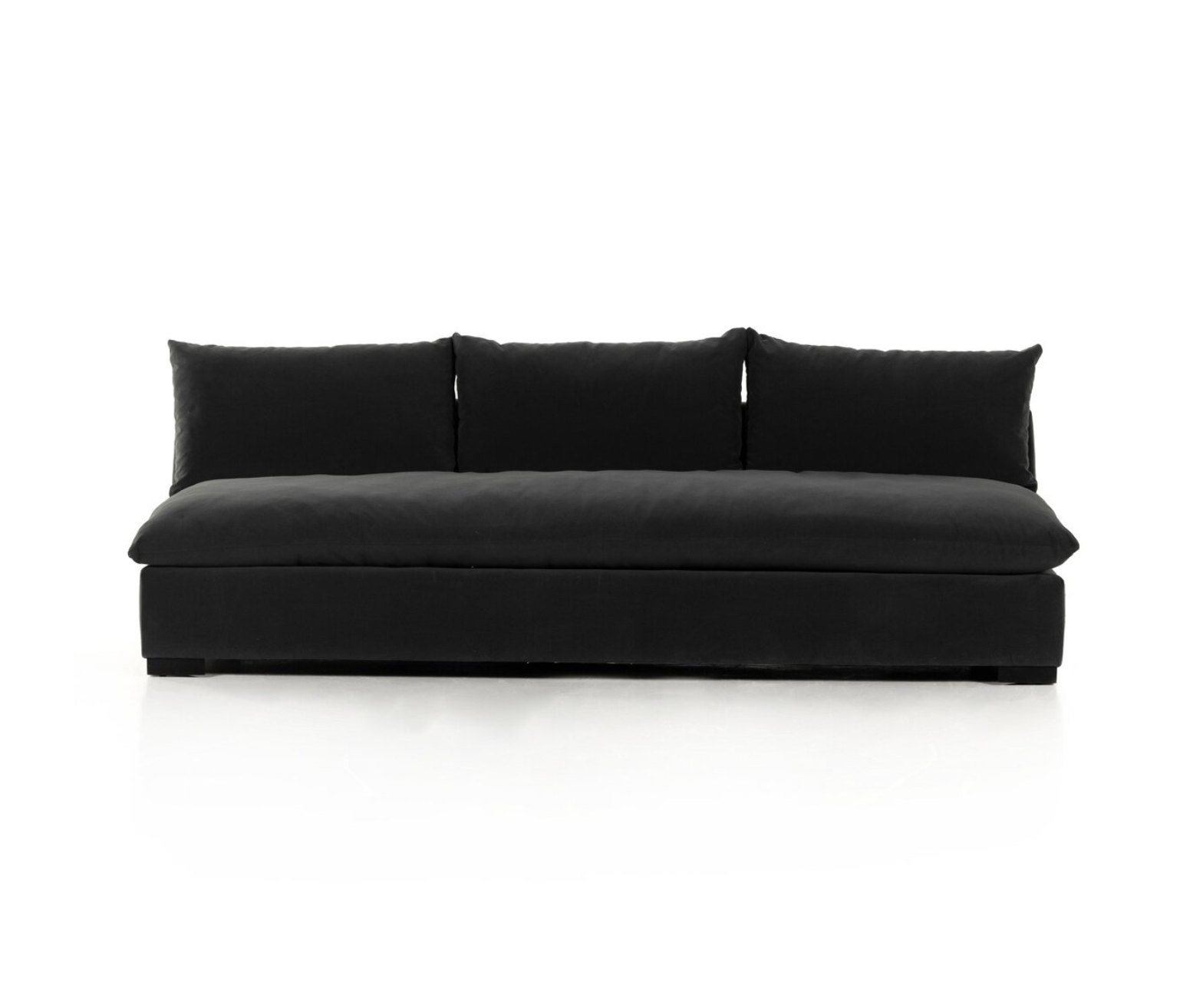 Welcome to the modern lounging essential. An armless sofa upholstered in soft, durable, stain-resistant fabric.