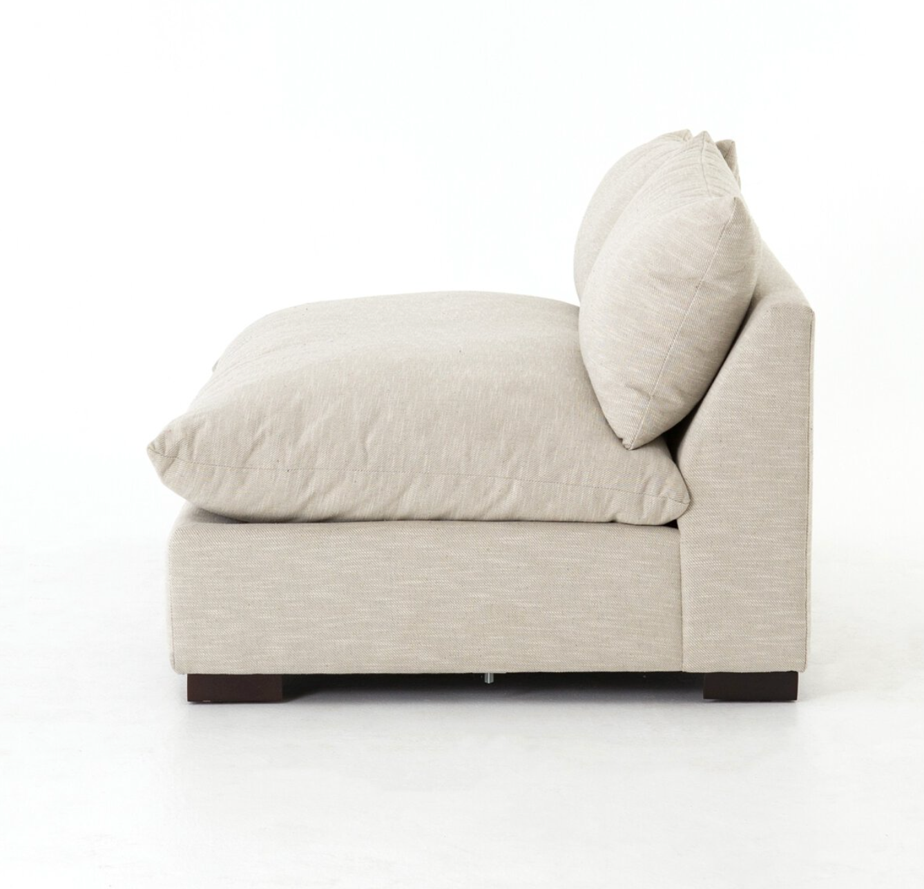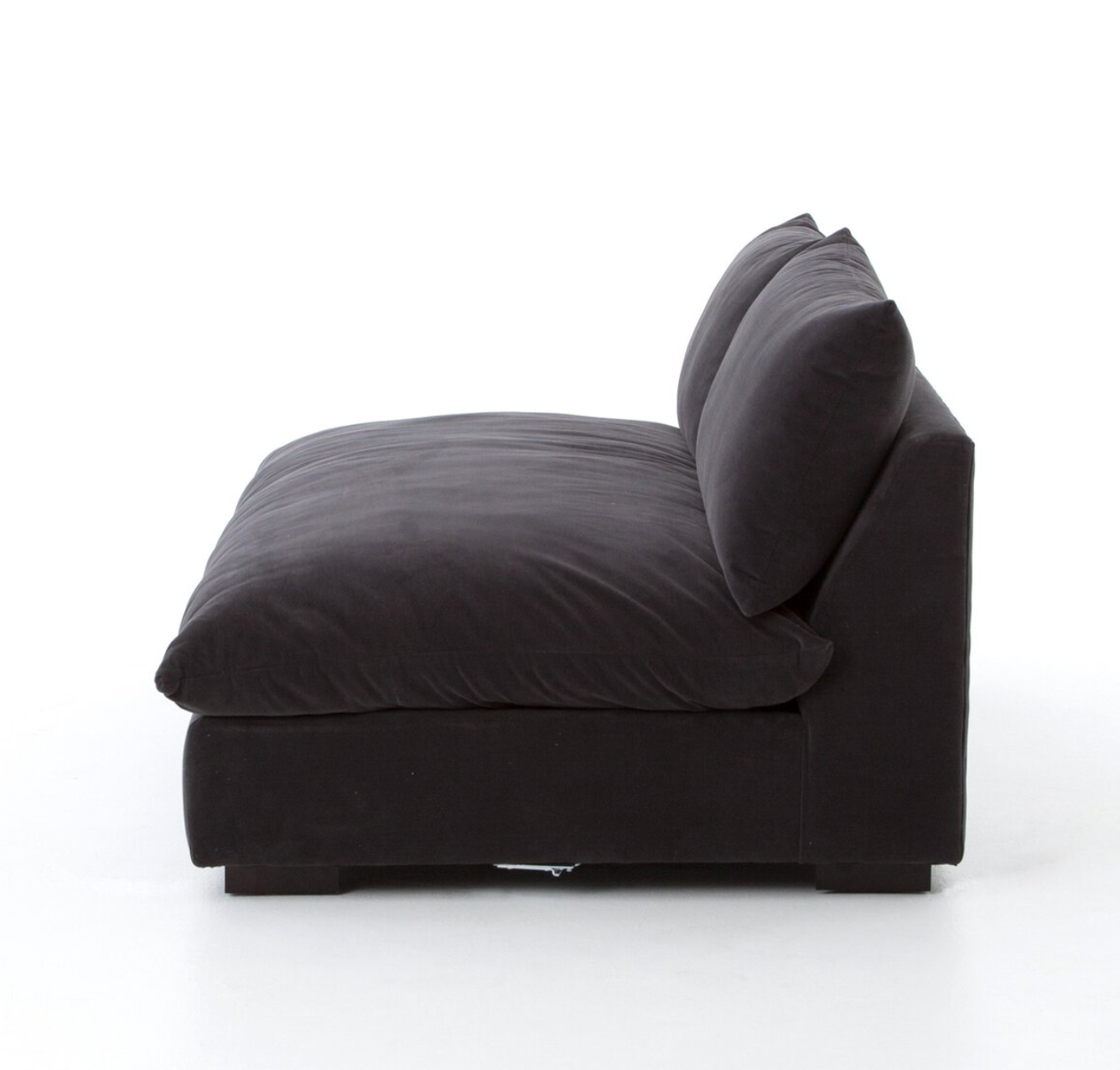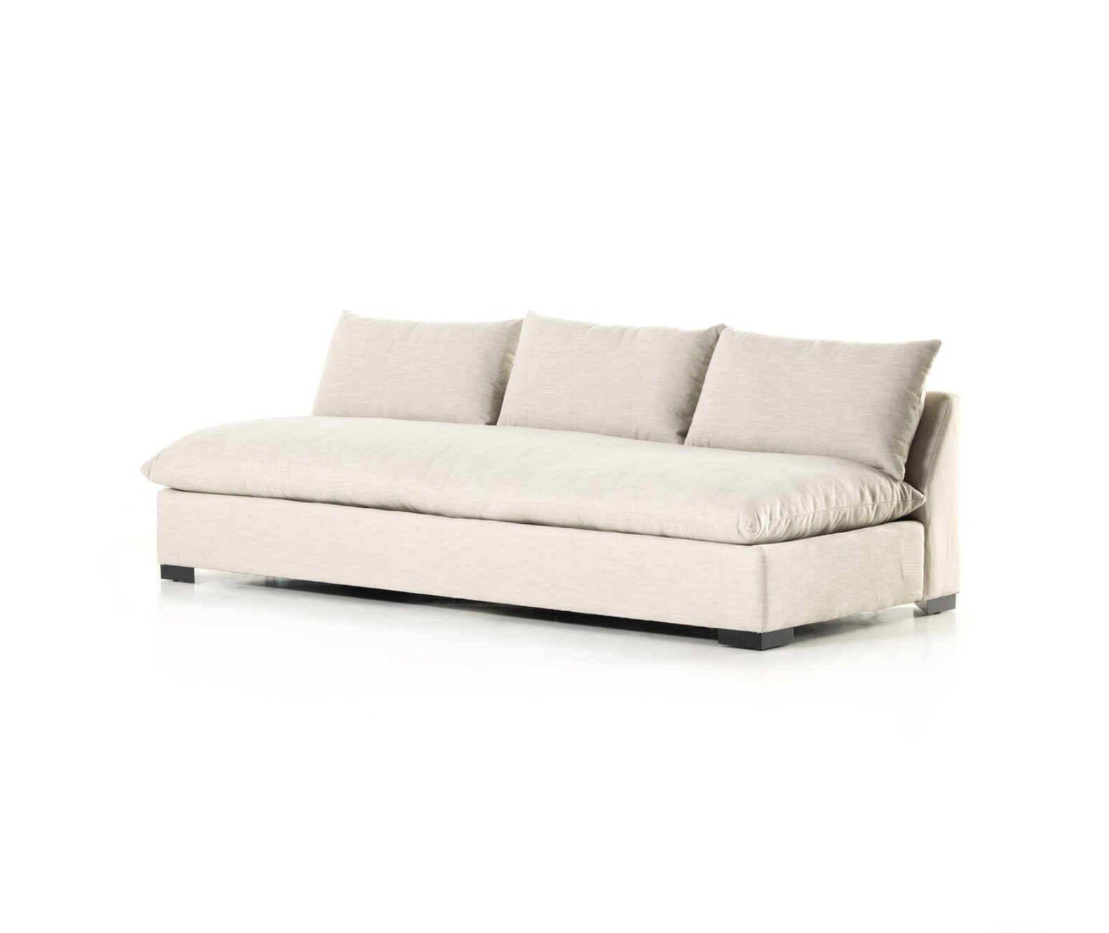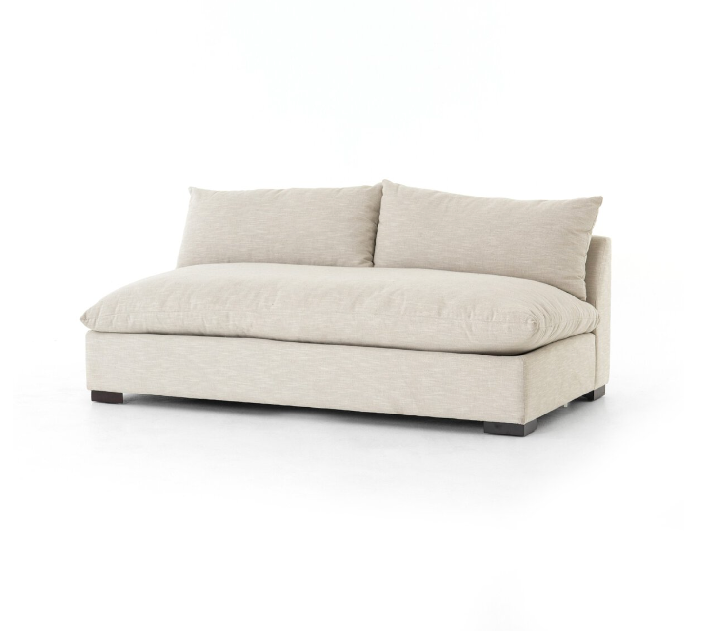 Welcome to the modern lounging essential. An armless sofa upholstered in soft, durable, stain-resistant fabric.