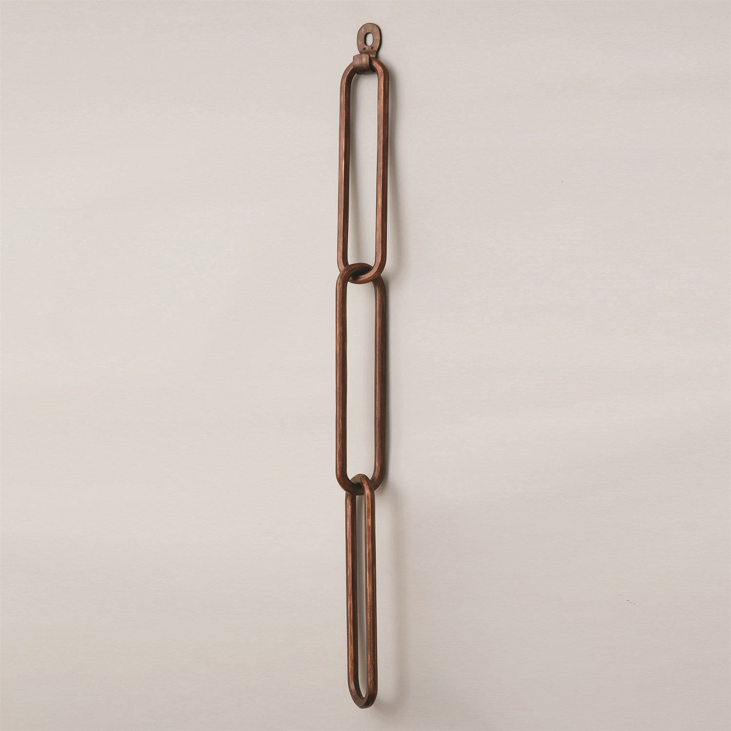 We love the commanding architectural presence of our new Mega Links wall sculpture. This over scaled and unexpected art piece has all the charm and visual interest of a "once in a lifetime" found object. Carved wood fashioned into large but delicate chain links, is perfect for punctuating a wall or large tabletop surface.